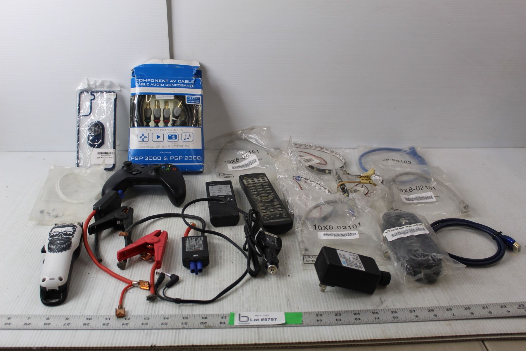 XBox Controller- Needs Batteries, Cables, Electric Razor, Misc.