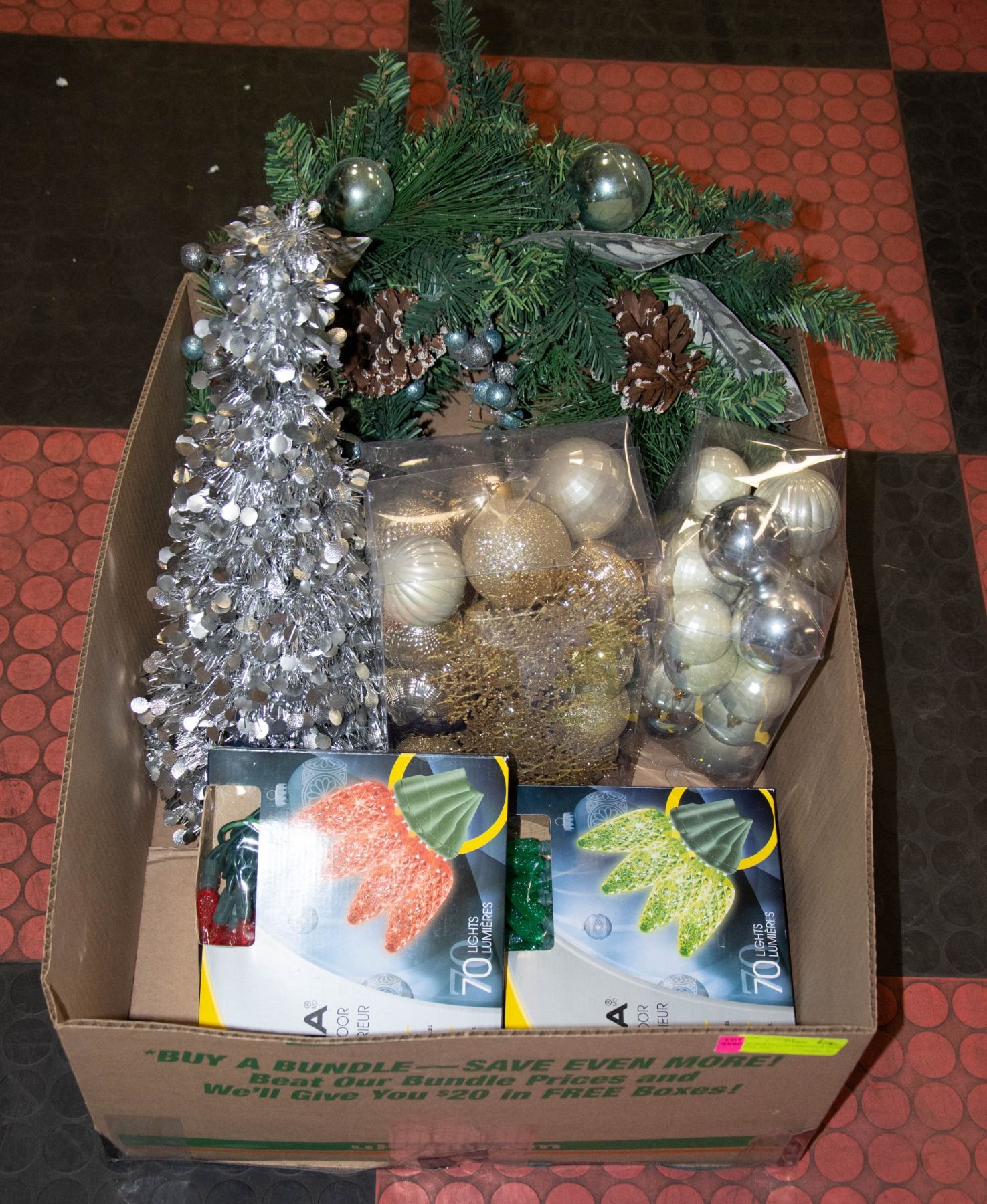 OF 70 RED LED INDOOR/OUTDOOR LIGHTS AND 70 GREEN LED INDOOR/OUTDOOR LIGHTS, TABLE-TOP CHRISTMAS TREE, WREATH, 2 CONTAINERS OF TREE DECORATIONS, ETC. **ALL ITEMS MUST BE REMOVED BY 5PM SATURDAY, DECEMBER 2ND 2023. ALL REMAINING ITEMS WILL BE SUBJECT TO A $6.00 PER DAY STORAGE CHARGE. ANY ITEMS REMAINING AFTER MONDAY, DECEMBER 18TH, 2023 WILL BE CONSIDERED FORFEITED. NO REFUNDS WILL BE ISSUED FOR FORFEITED ITEMS. TO SCHEDULE A PICK UP APPOINTMENT CLICK HERE