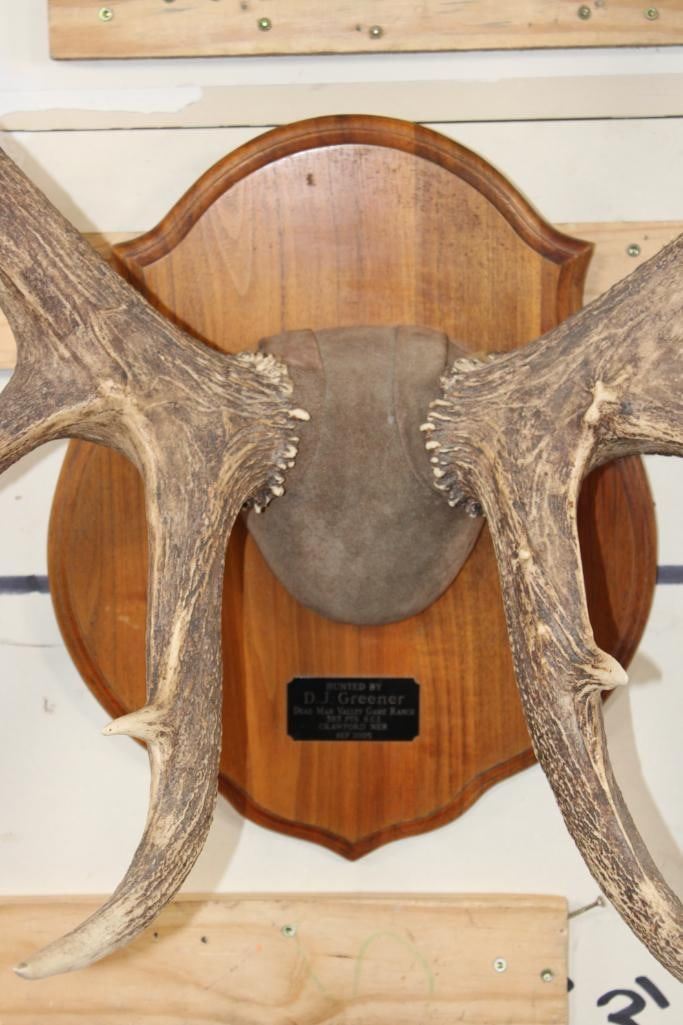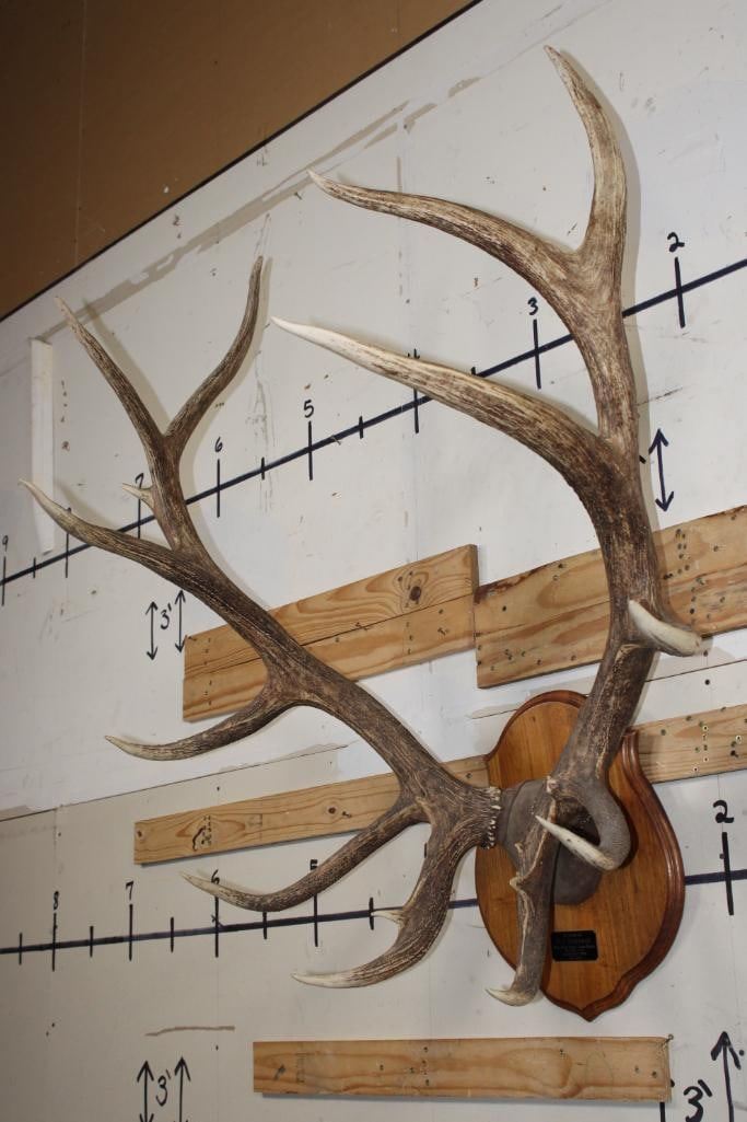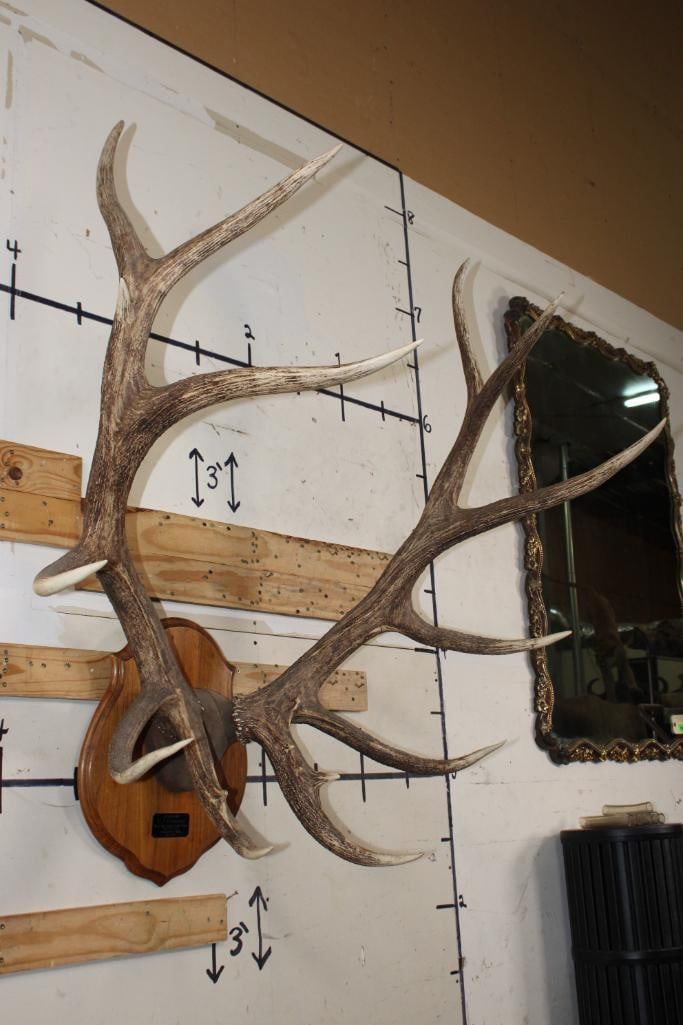 XL Heavy 15-Point ELK Rack on a Wooden Plaque. It has a 43.25" Spread and was Taken in September 2005 Crawford, Nebraska and scored 383 Safari Club International Points. The Next Lot is the Cape to this Elk. TAXIDERMY