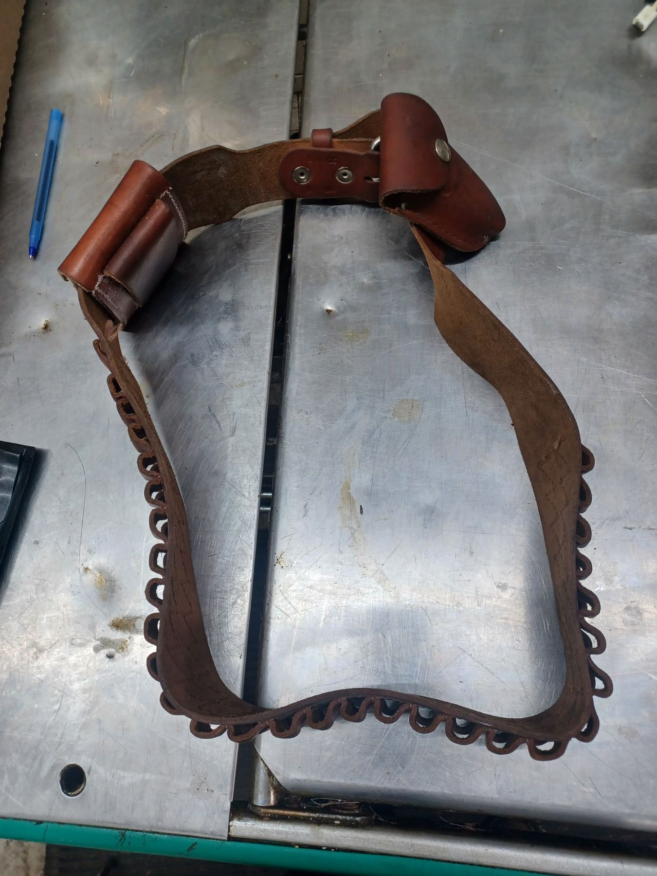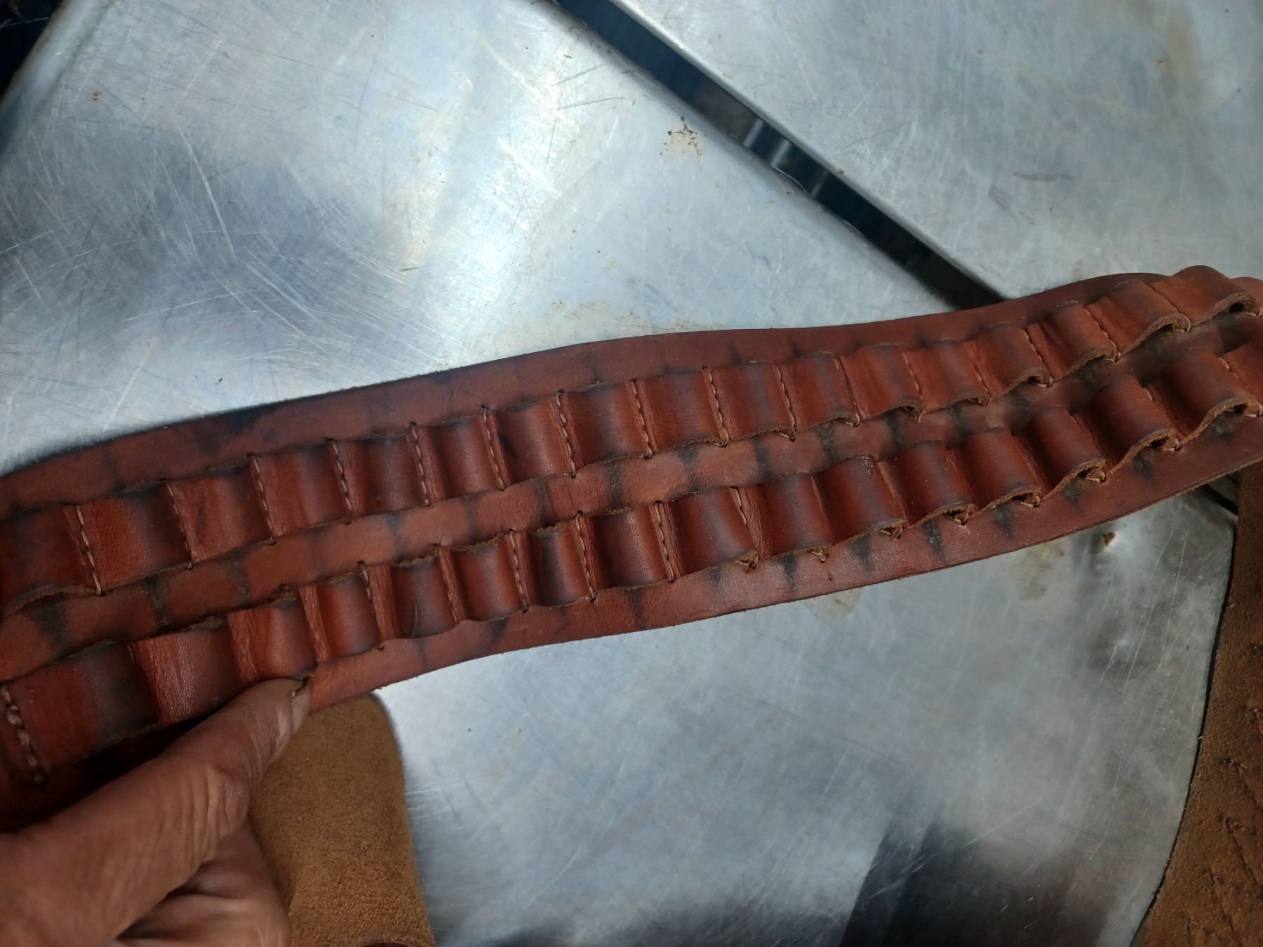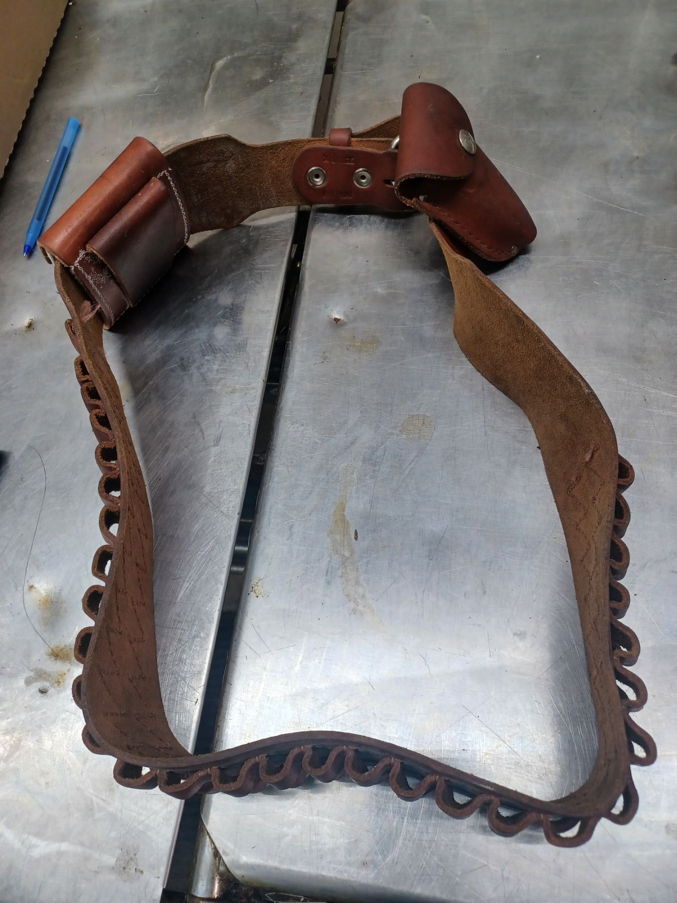 XL LEATHER AMMO BELT C/W CLIP AND KNIFE POUCH