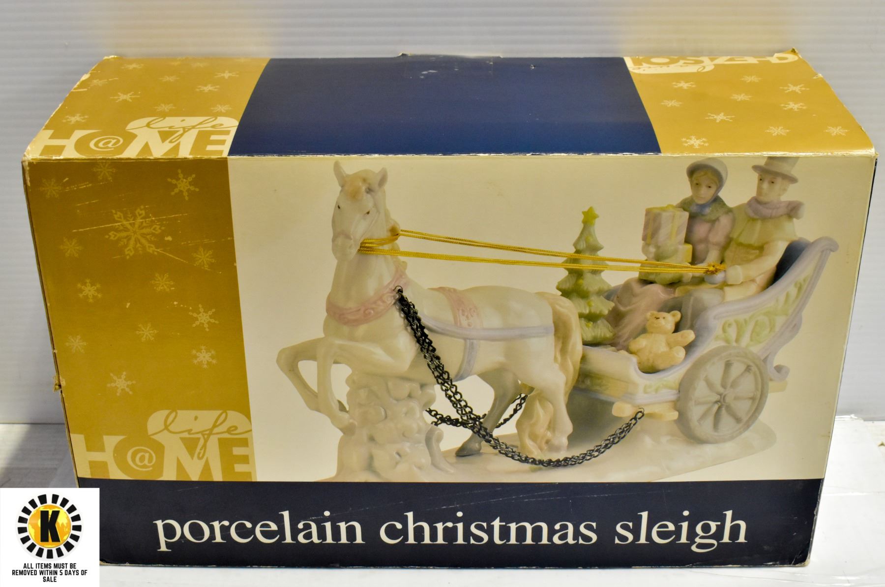 XL PORCELAIN SLEIGH, IN ORIGINAL BOX