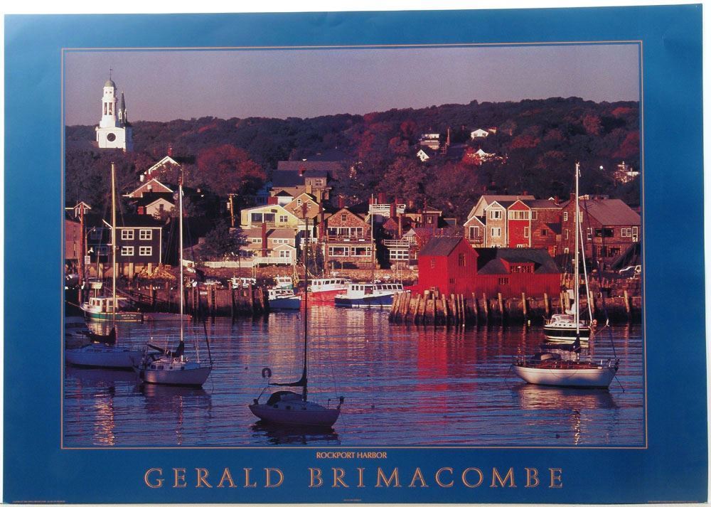 This is a nice photograph print by Gerald Brimacombe titled "Rockport Harbor." A great view from outside the harbor of scenic Rockport, Massachusetts. Published in 1988 by Voyageur Art, Minneapolis, Minnesota. SIZE: Overall: 34" x 24". Image: 28" x 19".
