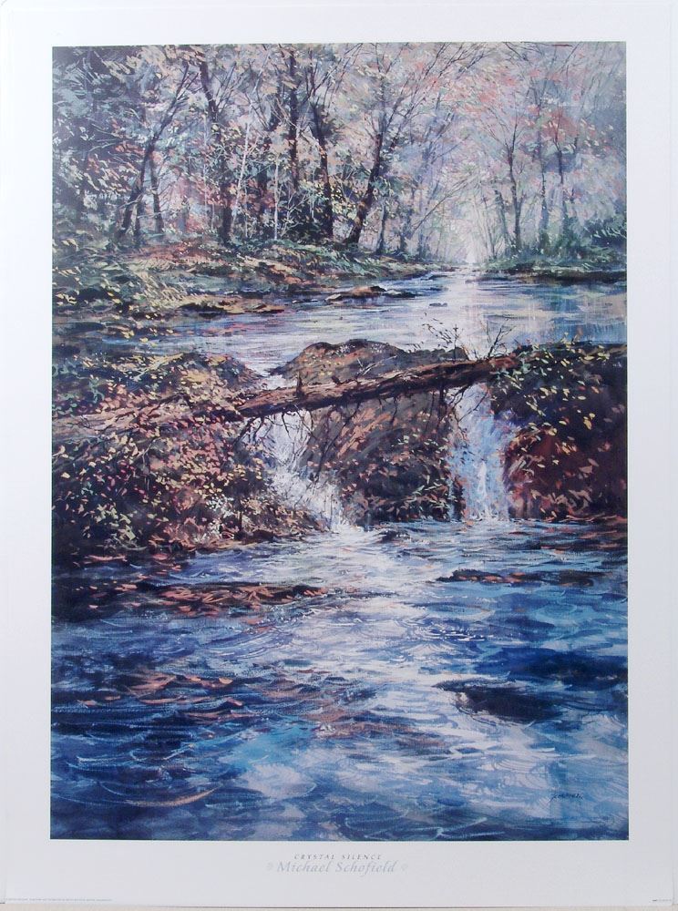 This is an extra-large print/poster titled Crystal Silence by Michael Schofield. Published in 1992 by Devon Editions, Seattle, WA. Printed in USA. SIZE: Approx. 29" x 39".