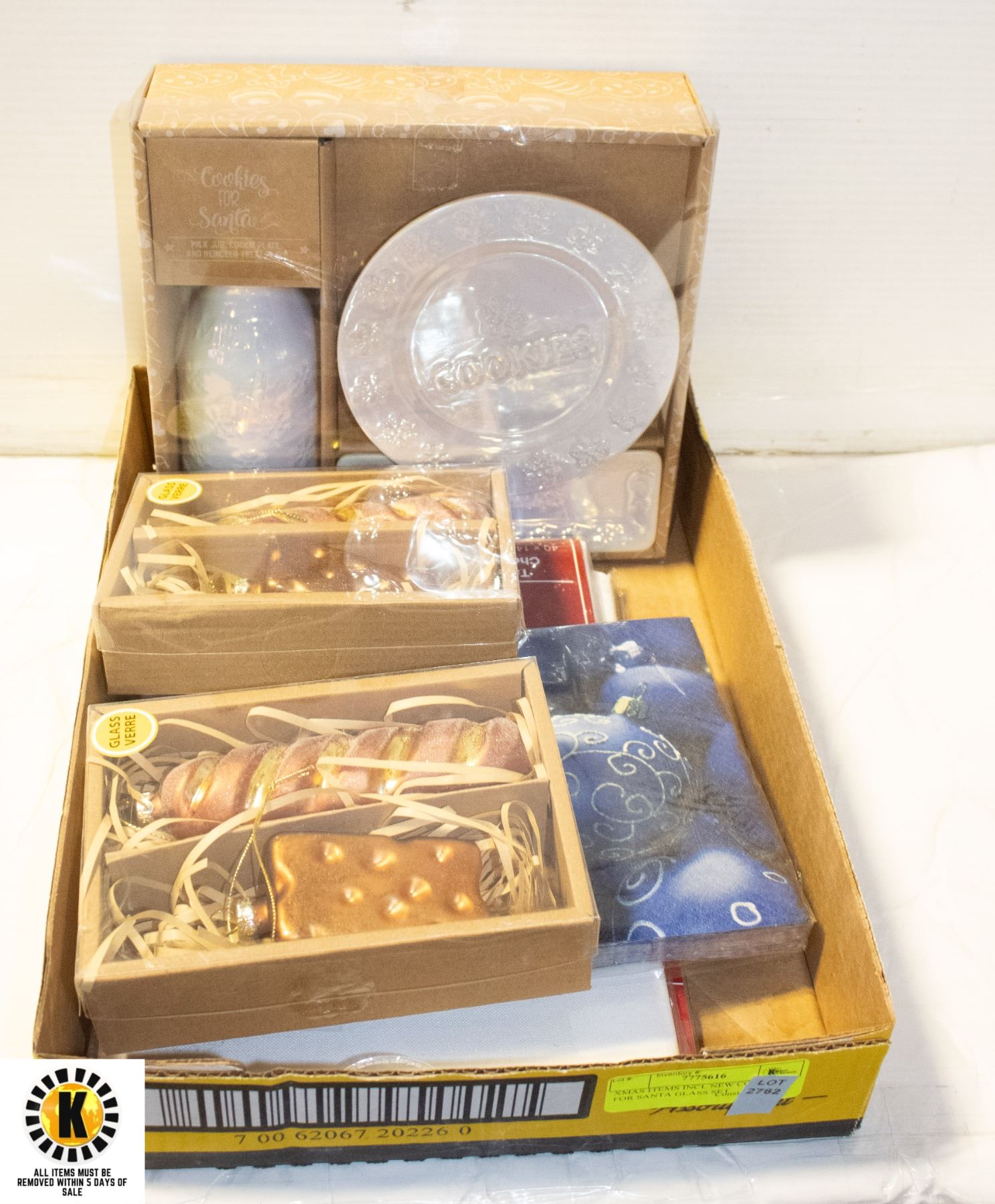 XMAS ITEMS INCL NEW COOKIES FOR SANTA GLASS SET