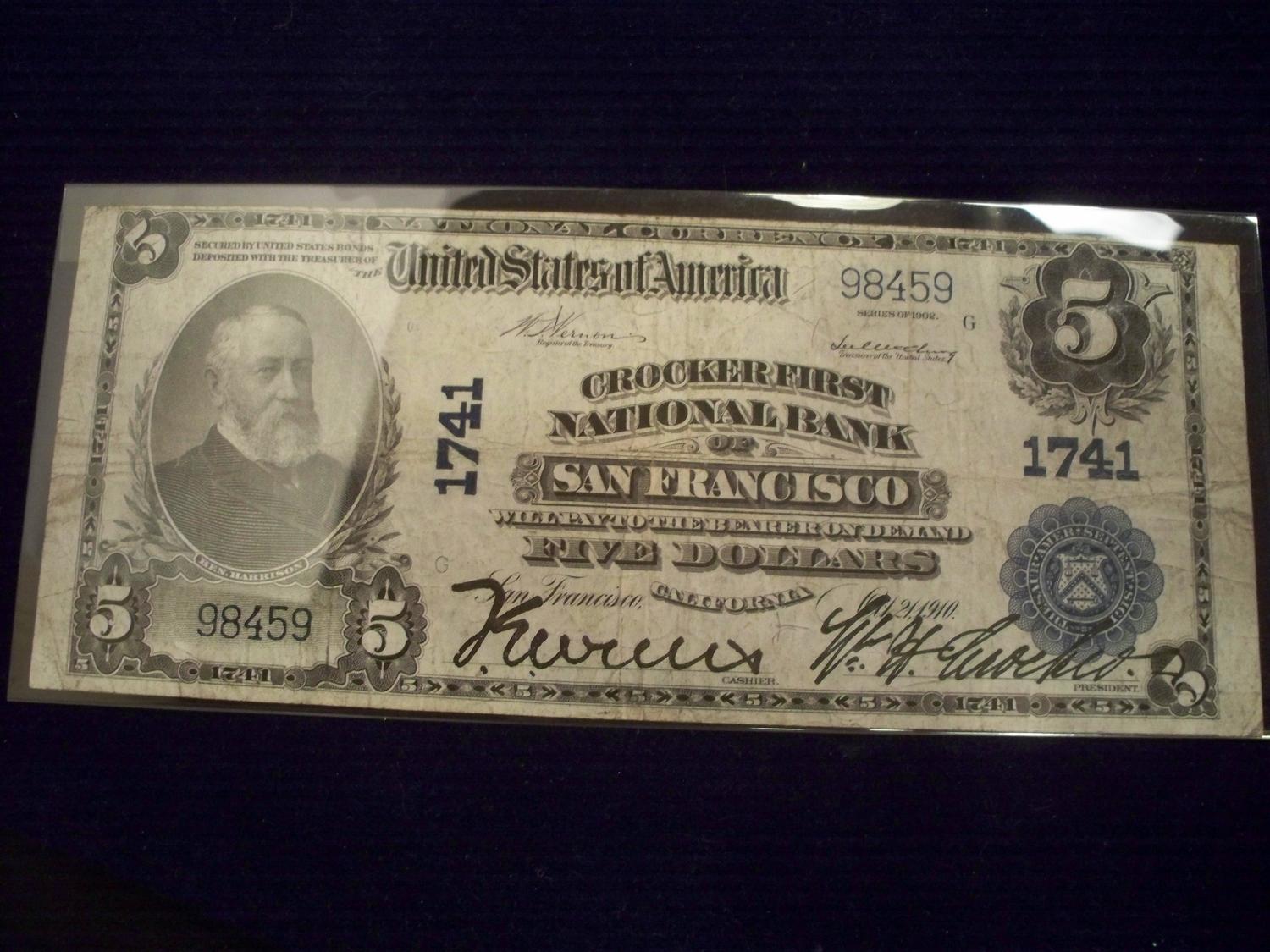 XTREMELY RARE 1902 $5 Crocker First National Bank Of San Francisco Note. COULD NOT FIND ONE FOR SALE, PAST OR PRESENT ON E BAY, VERY RARE