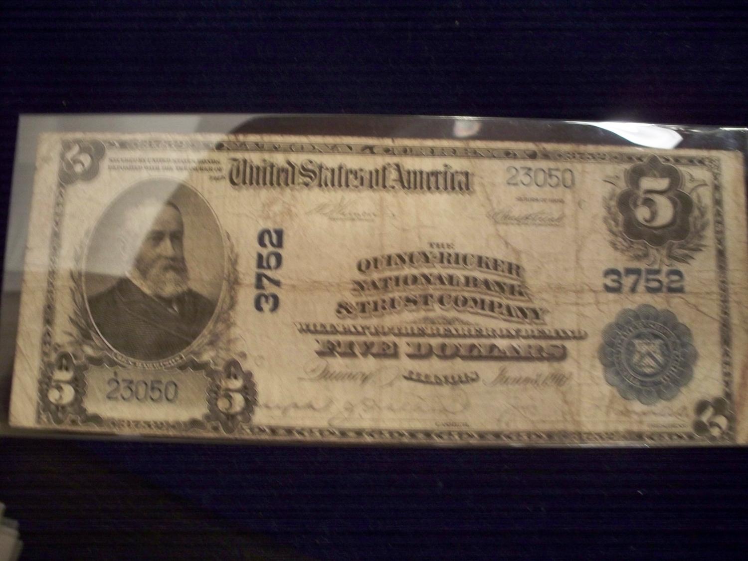 XTREMELY RARE 1902 $5 Quincy Ricker National Bank & Trust Note