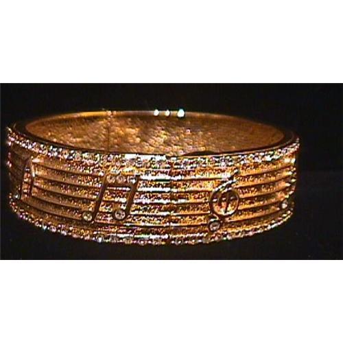 This ladie's wristwatch is a MUST HAVE for the woman who LOVES MUSIC !!! There are MUSIC NOTES embossed all around this wrist watch . Signed " Xanadu ". Hinged goldtone bangle bracelet quartz watch has 2 rhinestone bands going all around it ( top and bottom ). Back is marked " Japan Movement , stainless steel back , mineral crystal ". Measures approx 2 1/2 " in diameter x 3/4 " wide . Excellent overall used condition ,all rhinestones are present. A new battery has been added - this watch keeps perfect time . Far more beautiful than these photos show . Don't miss out !
