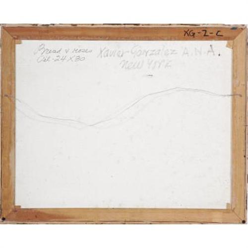 <B>XAVIER GONZALEZ (1898-1993)</B></I><BR><I>Bread and Roses</B></I>, 1950s<BR>Oil on canvas<BR>24 x 30 inches (61.0 x 76.2 cm)<BR>Signed lower right<BR><BR> Xavier Gonzalez was one of the most versatile and accomplished Texas artists. In the 1920s, his art was impressionist, in the 1930s regionalist, and in the 1940s modernist and surrealist; in the 1950s abstract expressionist. After yielding to complete abstraction, Gonzalez then chose to embrace all of these styles, and he switched back and forth effortlessly.<BR><BR>Xavier Gonzalez signed the back of this canvas, <I>Xavier Gonzalez A. N. A.,</B></I> which stands for Associate National Academician. He was later awarded full Academician from the National Academy of Design, an honor few Texas artists have achieved.<BR><BR>In this painting, Gonzalez returns to the realist tradition with a painting of one of his favorite subjects, the white rose.<BR><BR>Provenance:<BR>Estate of Xavier Gonzalez<B>Condition Report:</B> Excellent condition with no restorations. Period frame in excellent condition.<BR><BR><b>Shipping:</b> Requires 3rd Party Shipping (<a target="_blank" href="http://www.heritageauctions.com/common/shipping.php">view shipping information</a>)