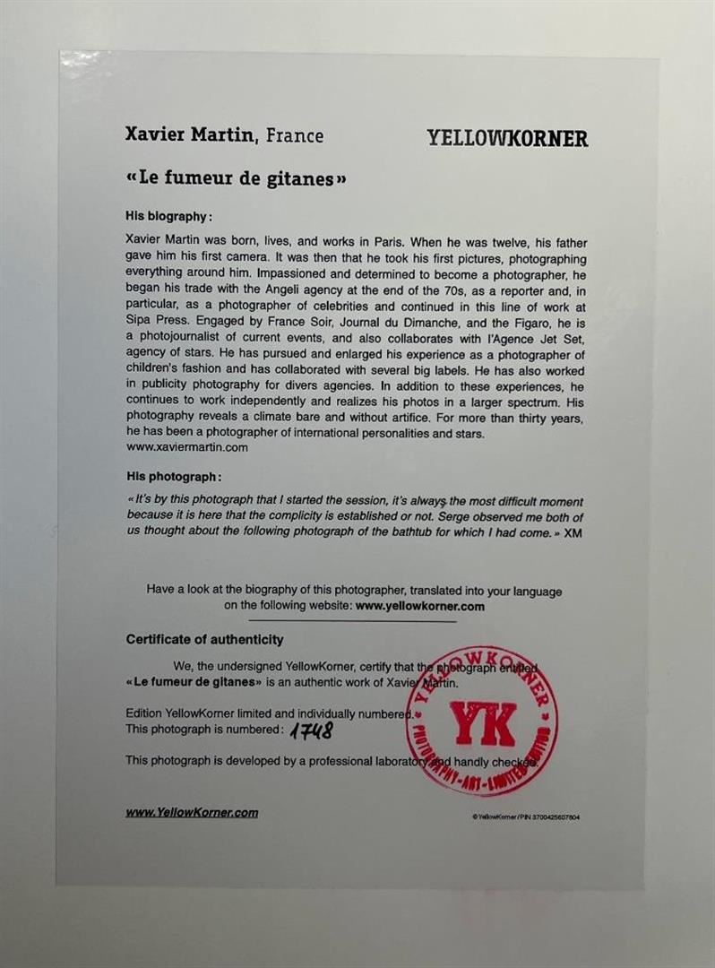 Xavier Martin Serge Gainsbourg Le Fumeur De Gitanes YellowKorner Certified Photograph. Certificate of Authenticity from YellowKorner affixed to the back. Matted Dimensions 16"x20". Protected with Clear Mylar Sleeve.