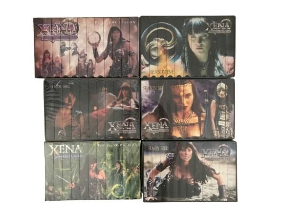 Collection of boxes sets for seasons 1-6 of Xena: Warrior Princess (VHS). All are shrink wrapped with the exception of the premiere season which has each VHS tape shrink wrapped individually (12"x8" (seasons 2-5), 13"x8" (premiere season)). All items come direct from the collection of the western chairman of Xena Warrior Princess' official fan club.