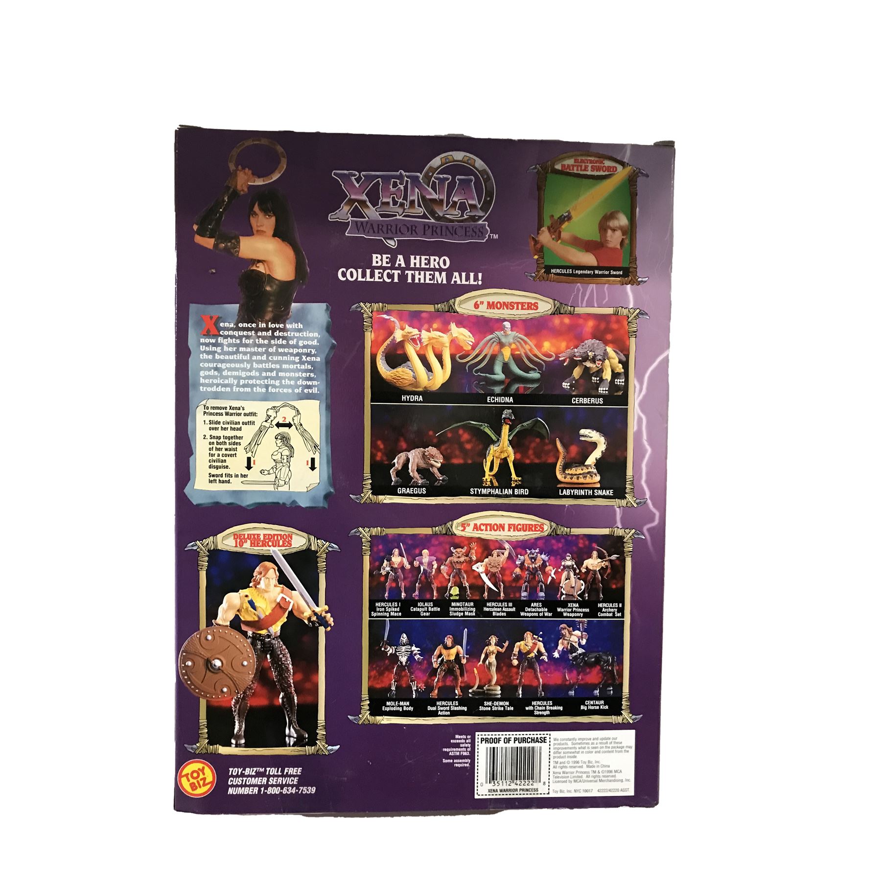 Xena: Warrior Princess Deluxe Edition action figure, fully posable and stands 10" tall, accessories included are extra warrior outfit with a sword and ring. (14"x10") All items come direct from the collection of the western chairman of Xena Warrior Princess' official fan club.