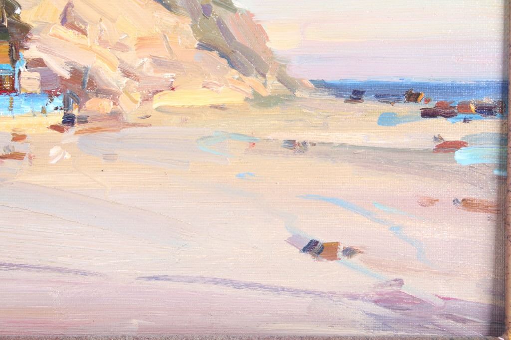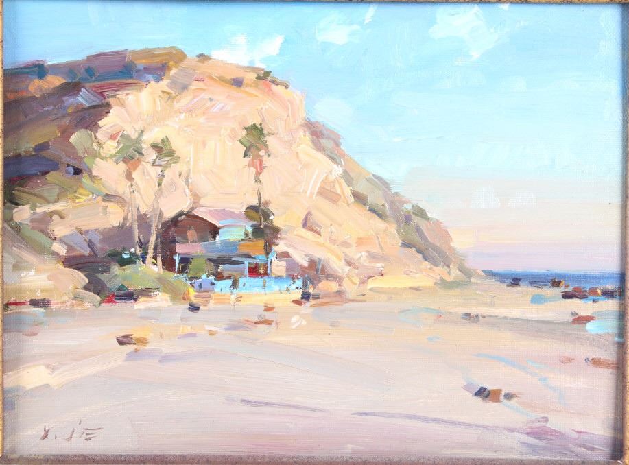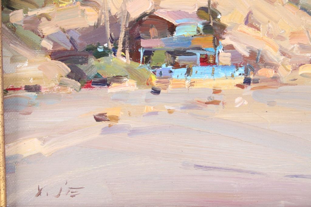 Presented in this lot is an Original Signed Oil on Board, "Laguna Beach", by Xiangyuan Jie, signature noted on bottom left corner. A Chinese painter, born in Hunan province, now living in Florida, Jie originally studied theatre set design and graduated from the Central Academy of Drama in Beijing with a BFA in that specialty, to which, in a way, he would later come full circle as a background artist for animated films such as Mulan, Tarzan Lilo and Stitch, and Brother Bear to name a few. He taught for several years at Hunan University and then traveled and lectured in Europe as a visiting scholar. He eventually settled in the U.S., taught at Auburn University as a visiting professor and later studied and taught at the College of Architecture at Georgia Tech. Jie is an accomplished plein air painter, painting in a wonderfully open and colorful style informed by the early work of Impressionist inspired painters from Europe, Russia and the US, including arguably the greatest figure in American Impressionism and among the best portrait artists of the late 19th and early 20th century, John Singer Sargent. Provenance on the rear backing paper states,