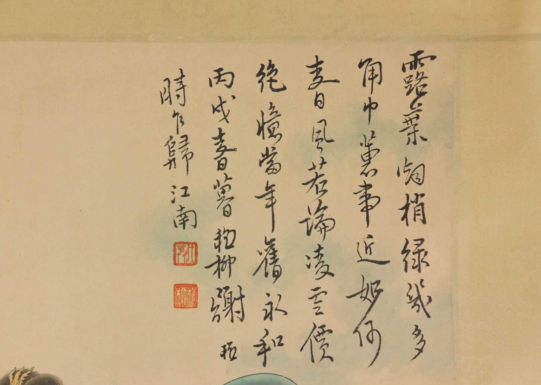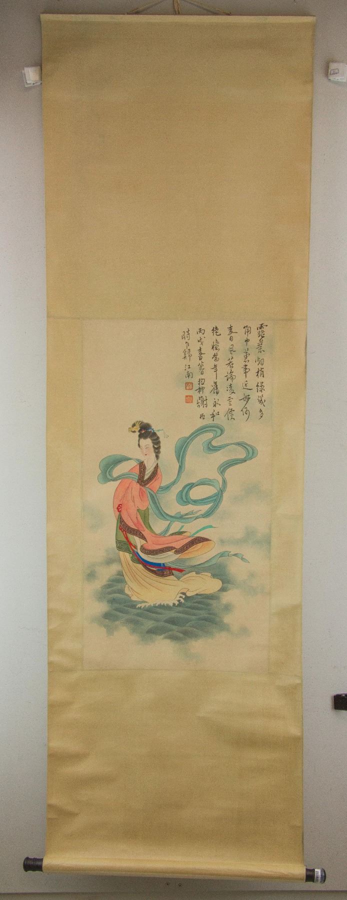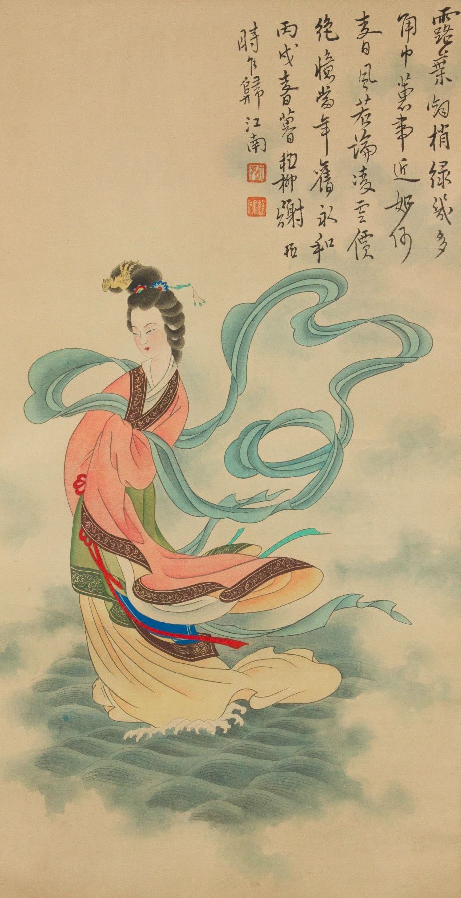 Portrait of a fairy standing on sea; Chinese ink and watercolour on paper; hanging scroll; signed Xie Zhiliu (1910-1997); inscribed with 2 artist seals; 82 cm x 44 cm