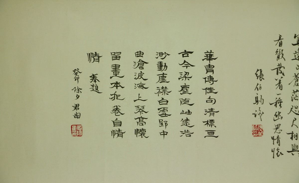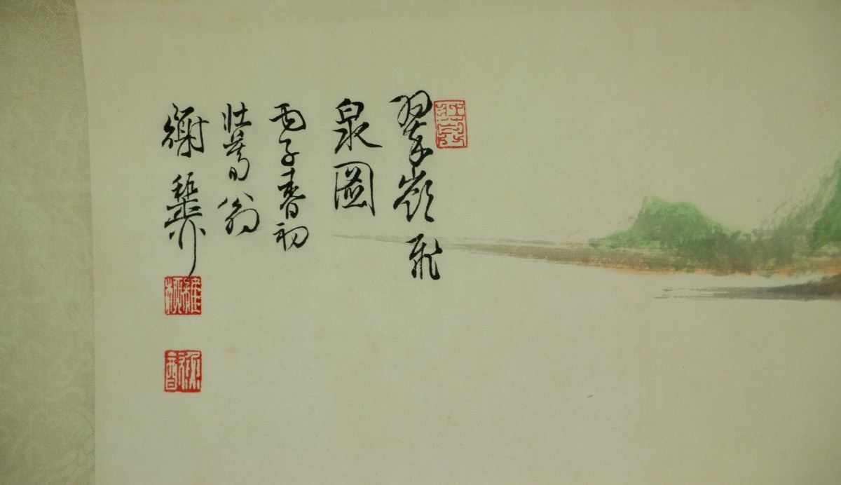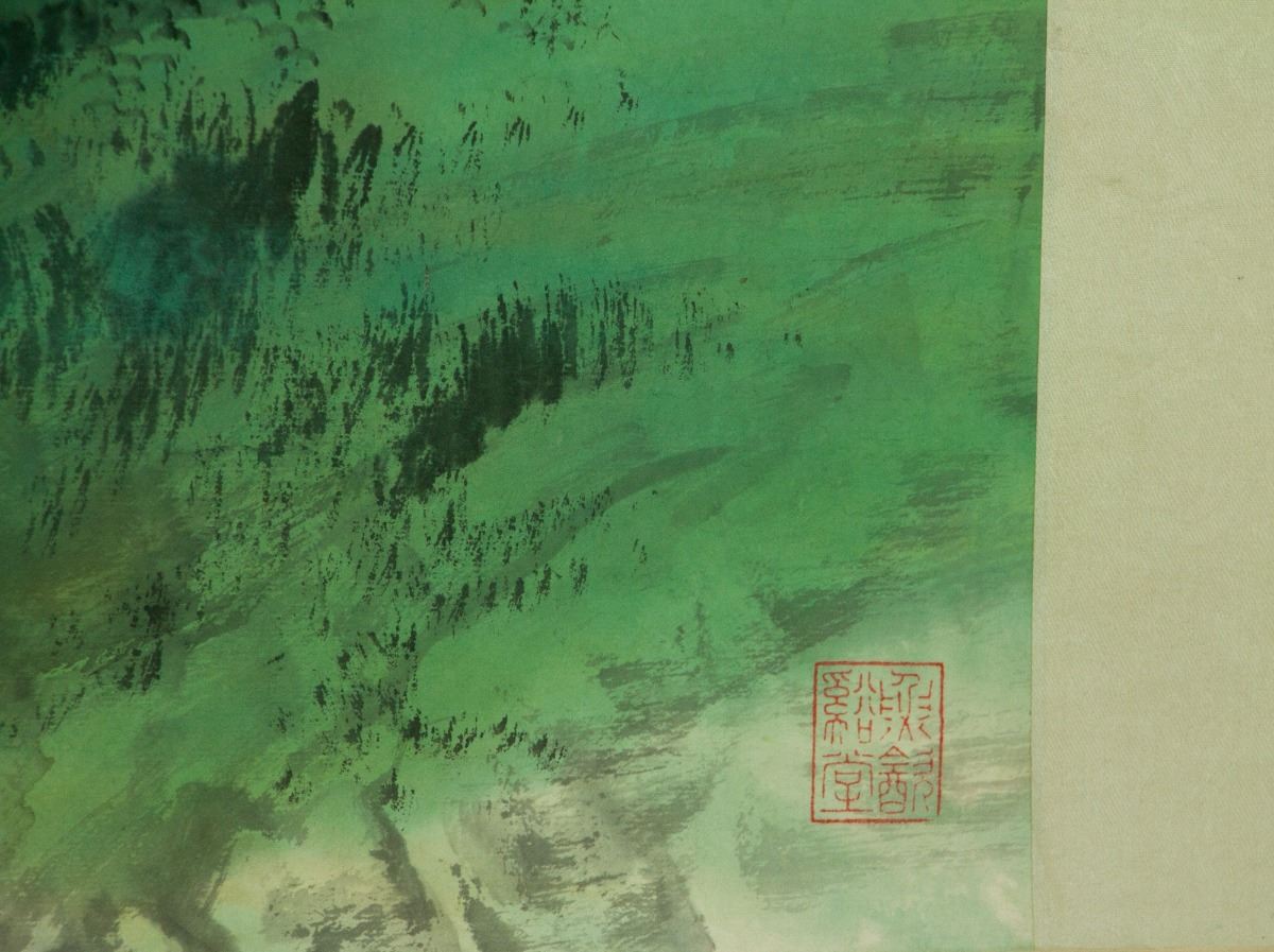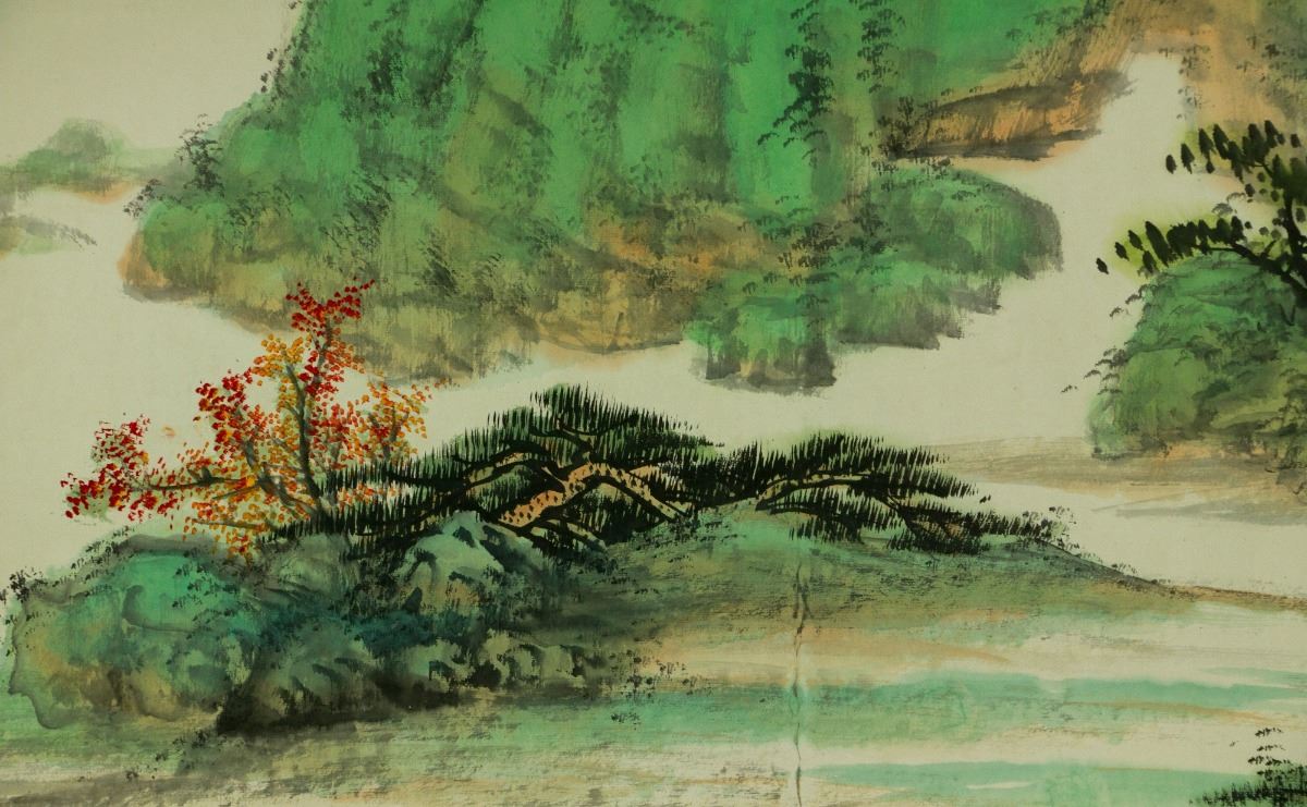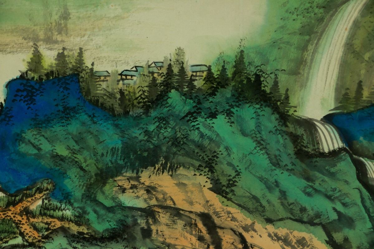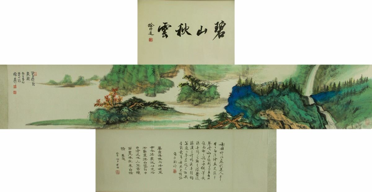 Blue-green landscape; Chinese ink and watercolour on paper; hand scroll; signed Xie Zhiliu (1910-1997) and inscribed with four artist seals; 30 cm × 179 cm