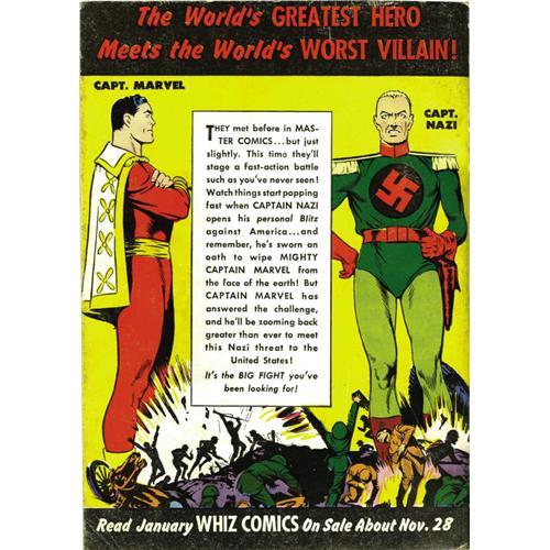 <B>Xmas Comics (first series) #1 (Fawcett, 1941) Condition: VF.</B></I> A huge bundle of fun, this massive 324 page comic book contains identical content to <B>Whiz Comics</B></I> #21, <B>Captain Marvel Adventures</B></I> #3, <B>Bulletman</B></I> #2, <B>Wow Comics</B></I> #3, and <B>Master Comics</B></I> #18. It's important to note that these books are not remaindered copies rebound into this collection, but were specially printed for this title, prepared at the same time as the originals. The book itself is well-preserved for such an unusual item; while the cover does show some wear (including some light soiling and small areas of color loss along the spine edges), the spine itself is remarkably solid and and firm, and the cover colors remain vibrant. This is definitely a title that doesn't come our way often -- in fact, this is the first time we've seen a copy of #1! Overstreet 2006 VF 8.0 value = $2,516.<BR><BR><b>Shipping:</b> Un-Slabbed Comic (<a target="_blank" href="http://www.heritageauctions.com/common/shipping.php">view shipping information</a>)