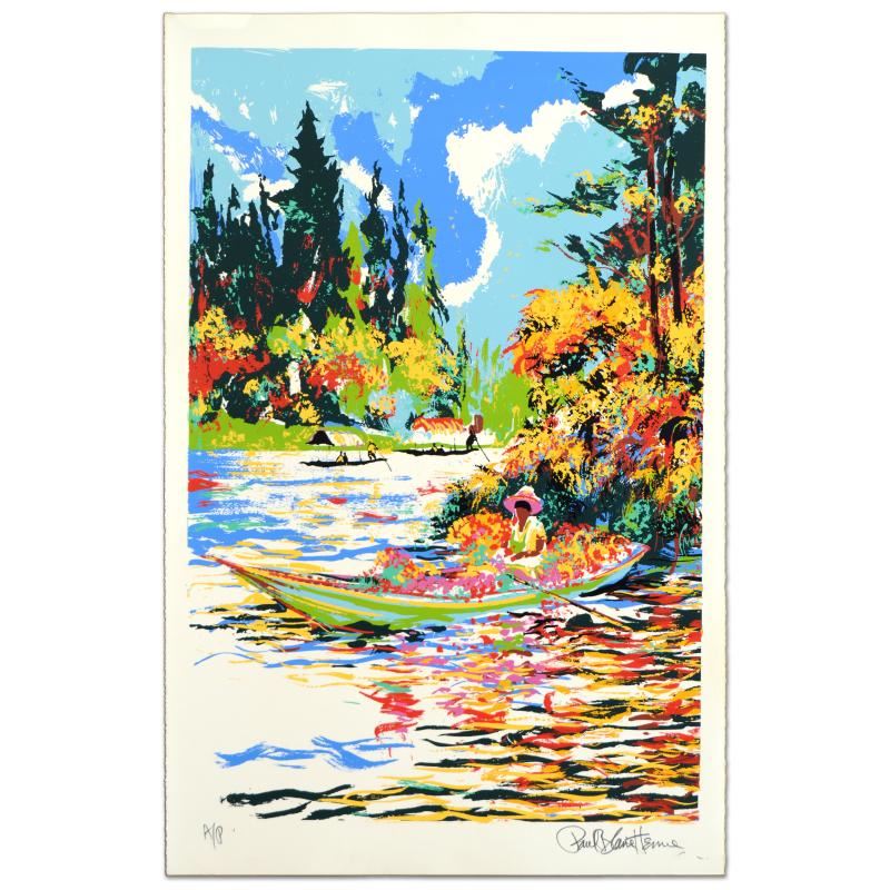 "Xochomilco" is a limited edition serigraph on deckle-edge paper from an AP Edition and hand signed by Paul Blaine Henrie (1932-1999)! Includes Certificate of Authenticity! Measures approx. 26" x 40" (border), 24" x 36" (image).