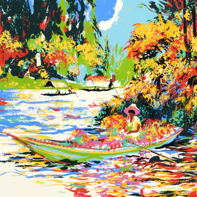 "Xochomilco" is a limited edition serigraph on deckle-edge paper from an AP Edition and hand signed by Paul Blaine Henrie (1932-1999)! Includes Certificate of Authenticity! Measures approx. 26" x 40" (border), 24" x 36" (image).