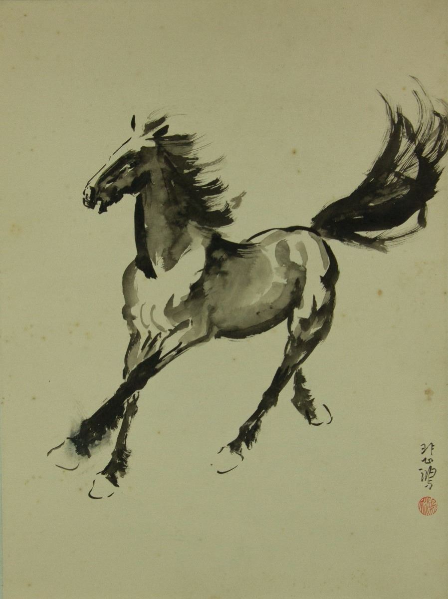 Running horse; Chinese ink paper; signed Xu Beihong (1895-1953) and inscribed with one artist seal; 82 cm × 55 cm