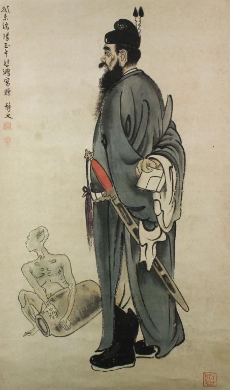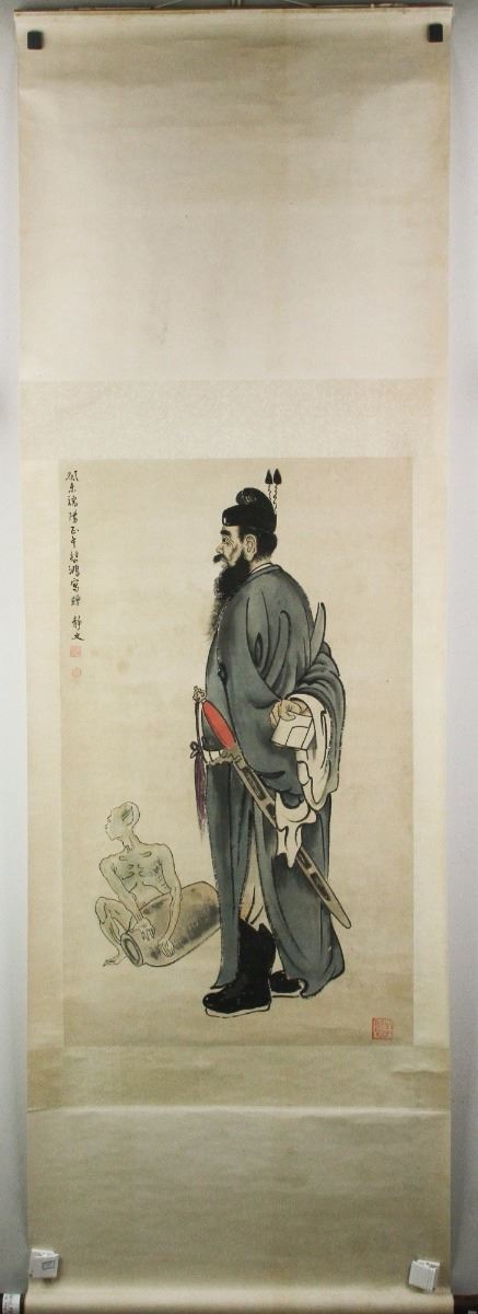 Zhong Kui, Chinese ink and watercolour on paper, hanging scroll, signed Xu Beihong (1895-1953); inscribed with three artist seals; 88.5 cm x 53 cm.