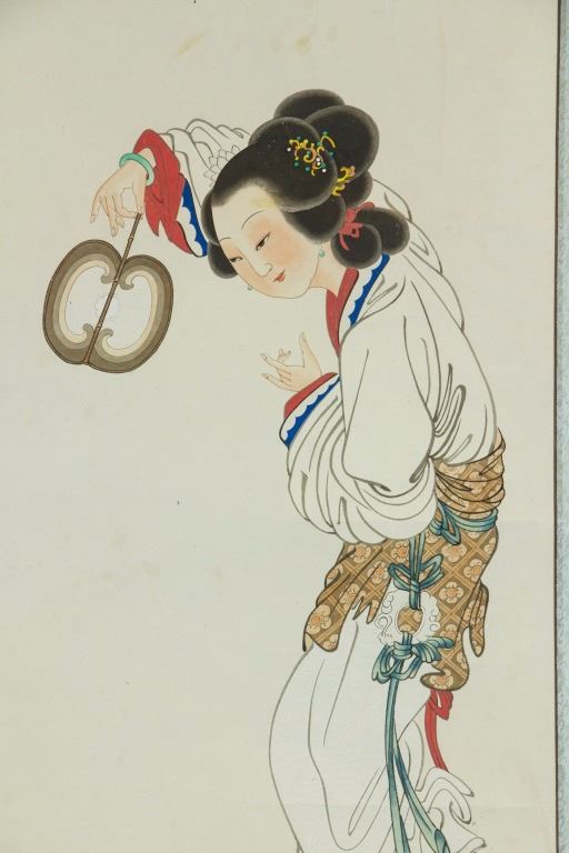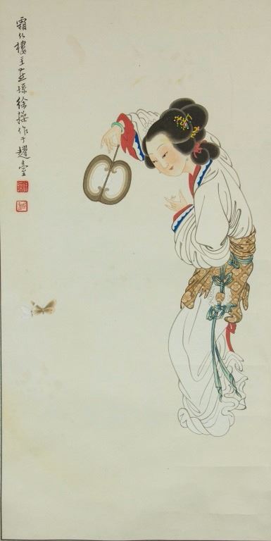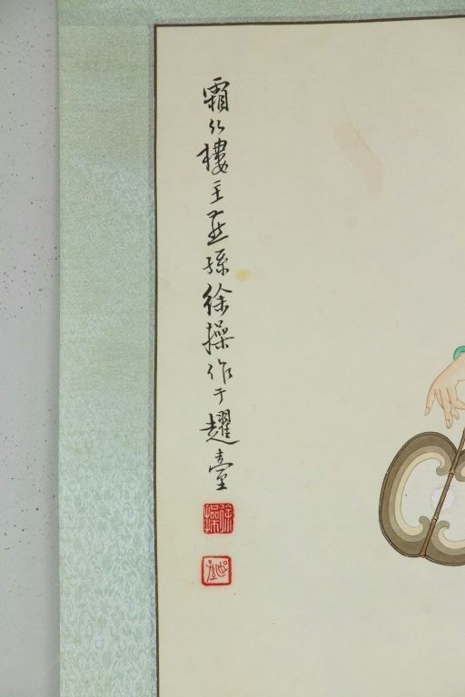 Portrait of court lady; Chinese ink and watercolour on paper roll; signed Xu Cao (1899-1961); inscribed with 2 artist seals; 179 cm × 38 cm