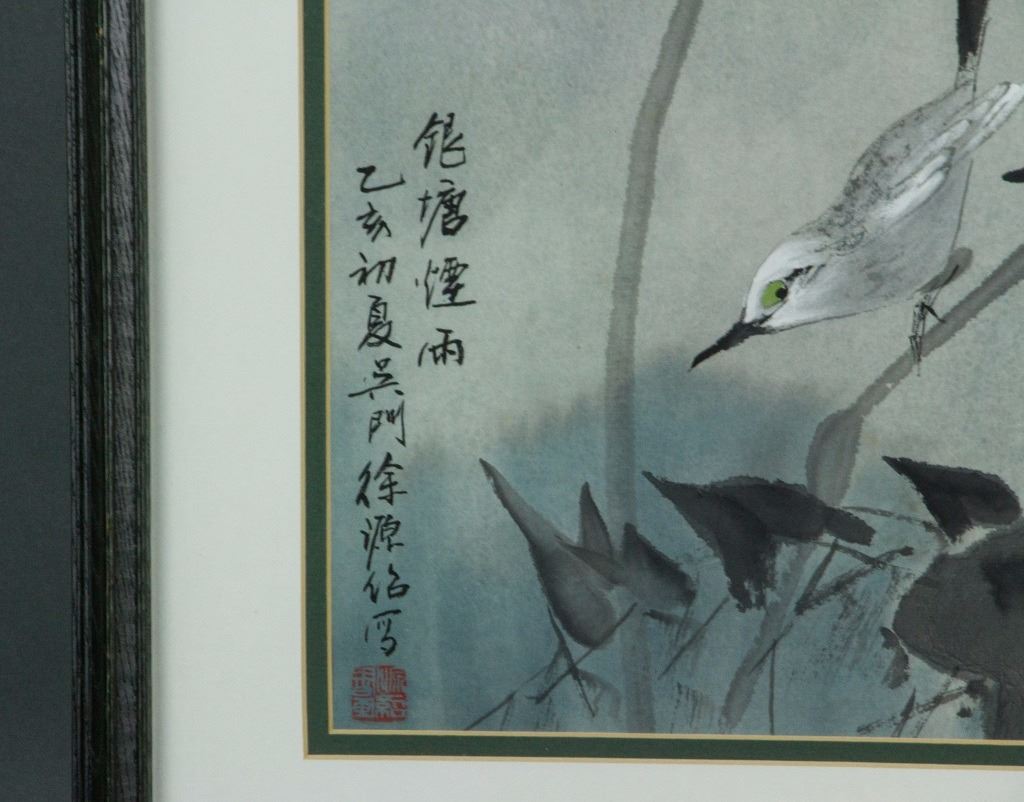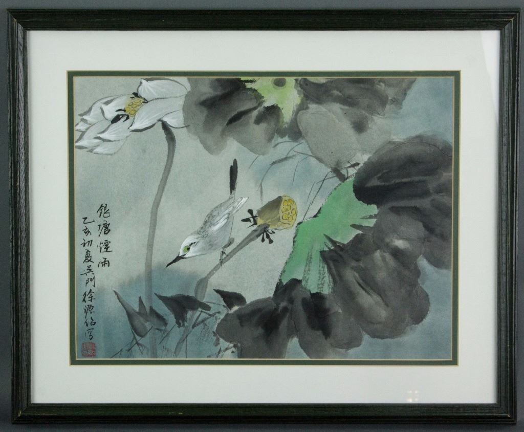 Bird and lotus in foggy pond, Chinese ink and watercolour on paper; framed; signed Xu Yuanshao (b.1944); inscribed with 1 artist seal; 31 cm × 40 cm