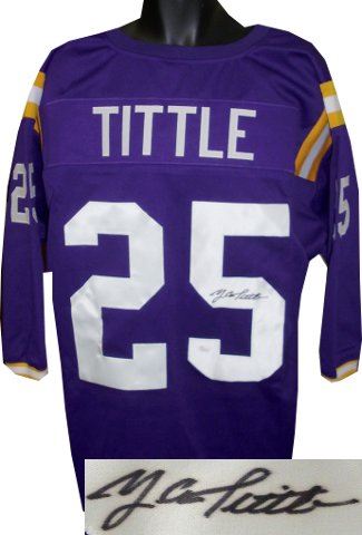 YA Tittle attended Louisiana State University and played quarterback for the LSU Tigers football team. He was named the MVP of the legendary 1947 Cotton Bowl Classic, which ended in a scoreless tie between LSU and Arkansas during an ice storm. Y.A. Tittle has hand autographed this LSU Tigers Purple Custom Jersey. James Spence Hologram and Certificate of Authenticity.