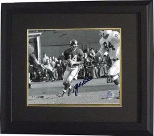 YA Tittle lead the Giants to three straight Eastern Division titles. Tittle threw seven touchdown passes on October 28, 1962, in a game against the Washington Redskins that the Giants won 49-34. In 1963, he set what was then an NFL record by throwing 36 touchdown passes. He was elected 7 times to the Pro Bowl and 3 times as an All-Pro selection. Y.A. Tittle has hand autographed this New York Giants 8X10 Passing Photo. This item was signed at in April 22, 2006 in Denver, CO. Certificate of Authenticity from Athlon Sports. Custom Black Mat and Premium Black Framed as shown.