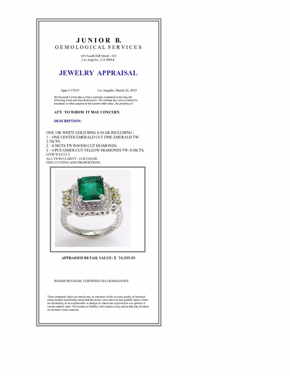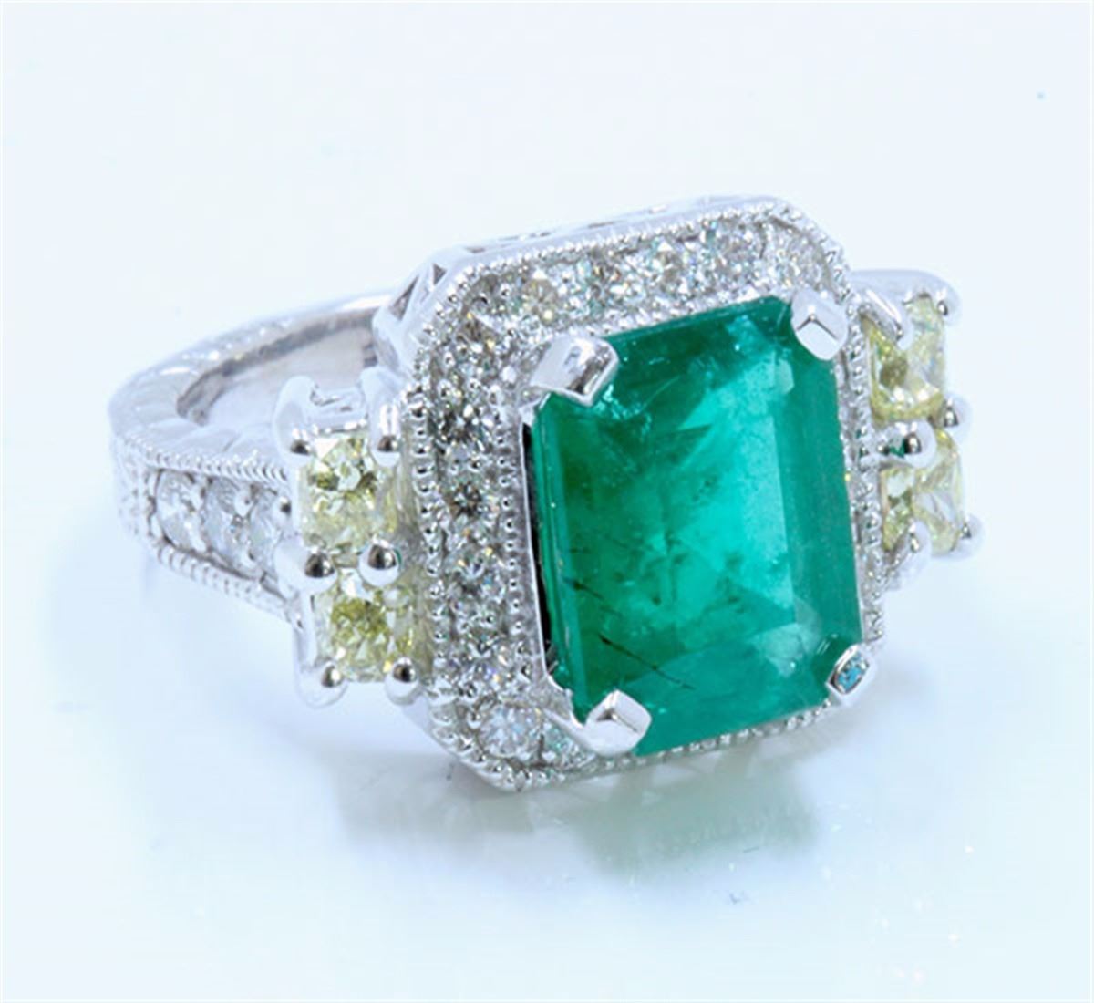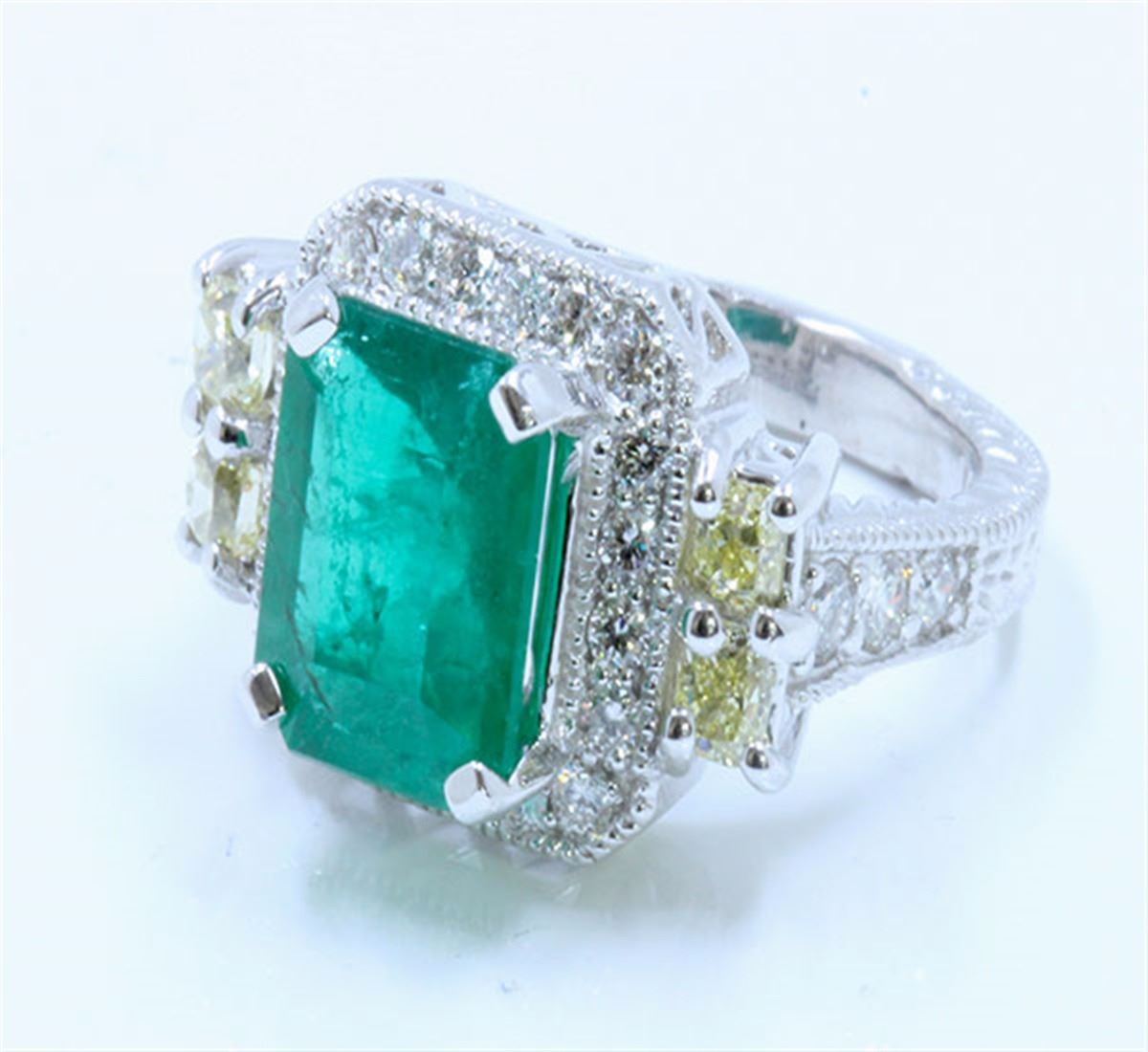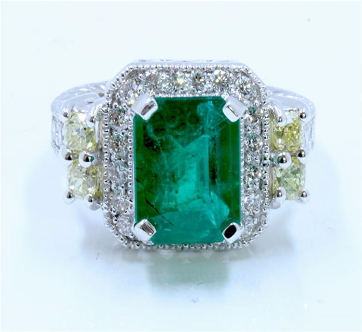 Y.DIAMOND 0.56CT / EMERALD 2.76CT, 14K W/G RING 6.54GRAM / DIAMOND RD 0.58CT