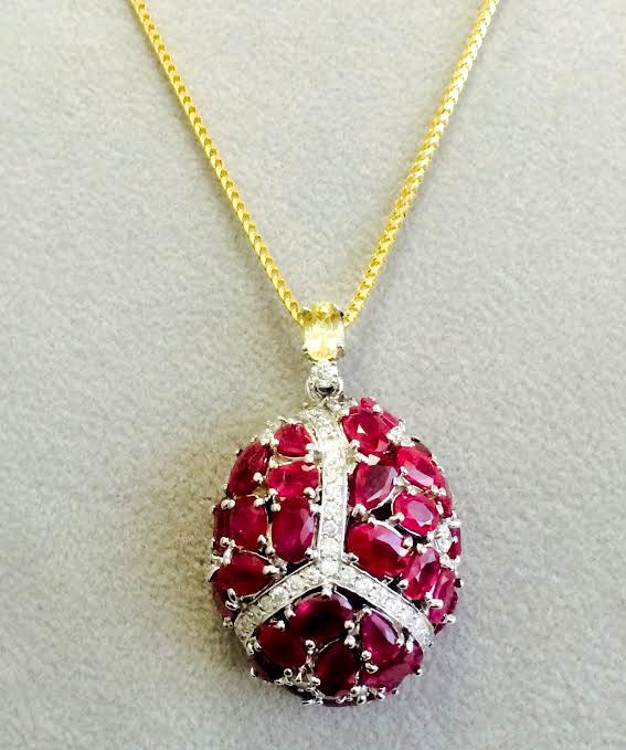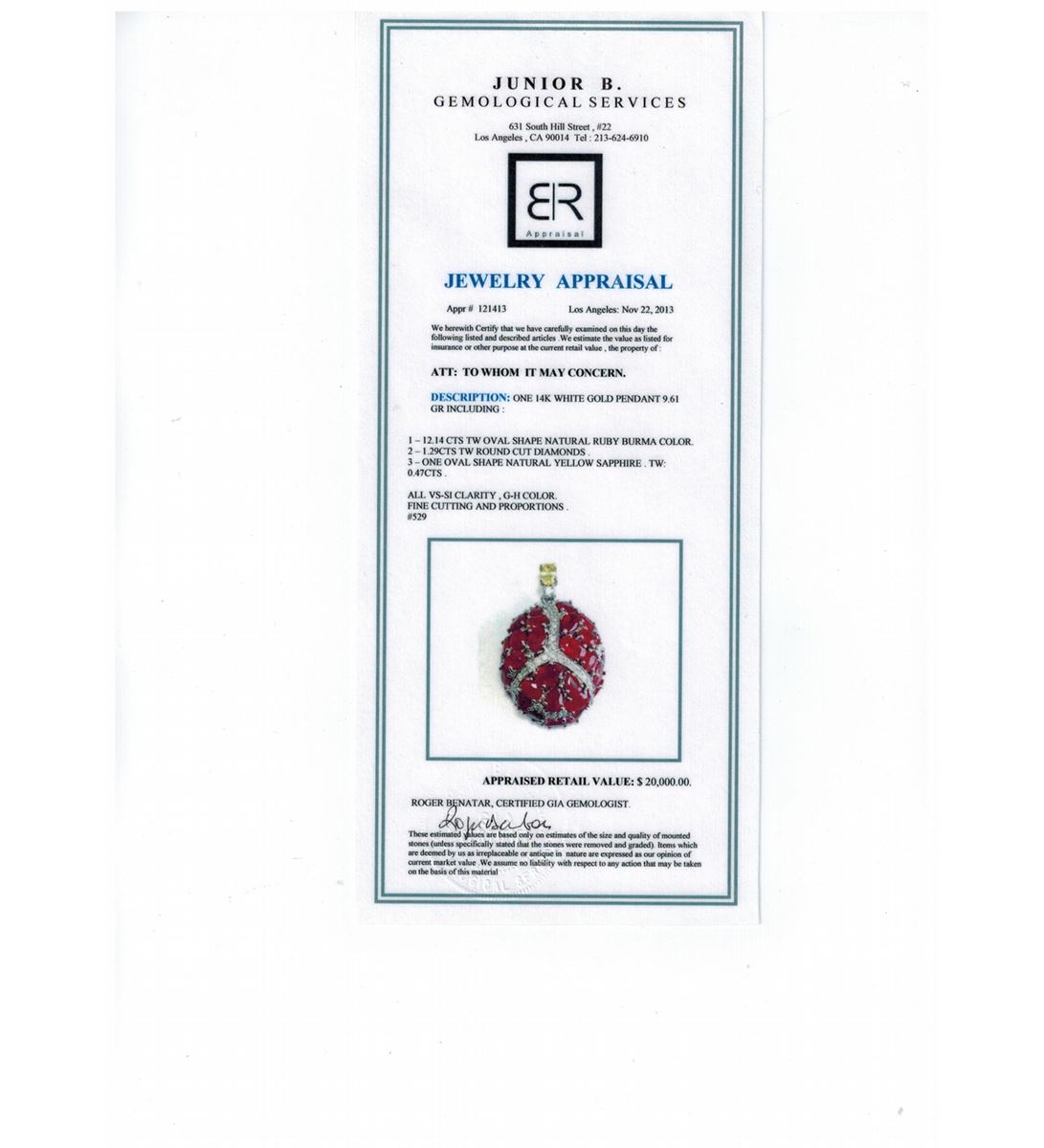 Y.SAPPHIRE 0.47CT / RUBY 12.14CT / CHAIN 4.48GRAM 14K Y/G, 14K W/G PENDANT 9.61GRAM / DIAMOND 1.29C
