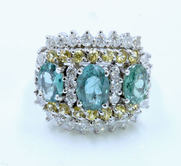 Y.SAPPHIRE 0.60CT / ALEXANDRITE 2.91CT, 14K W/G RING 7.28GRAM / DIAMOND 0.96CT