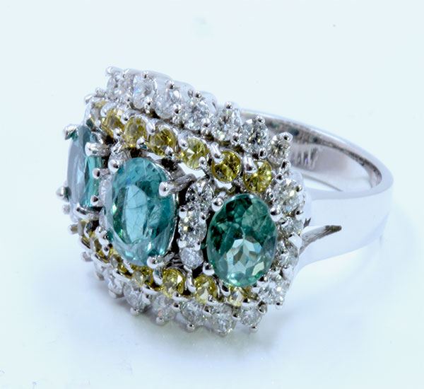 Y.SAPPHIRE 0.60CT / ALEXANDRITE 2.91CT, 14K W/G RING 7.28GRAM / DIAMOND 0.96CT