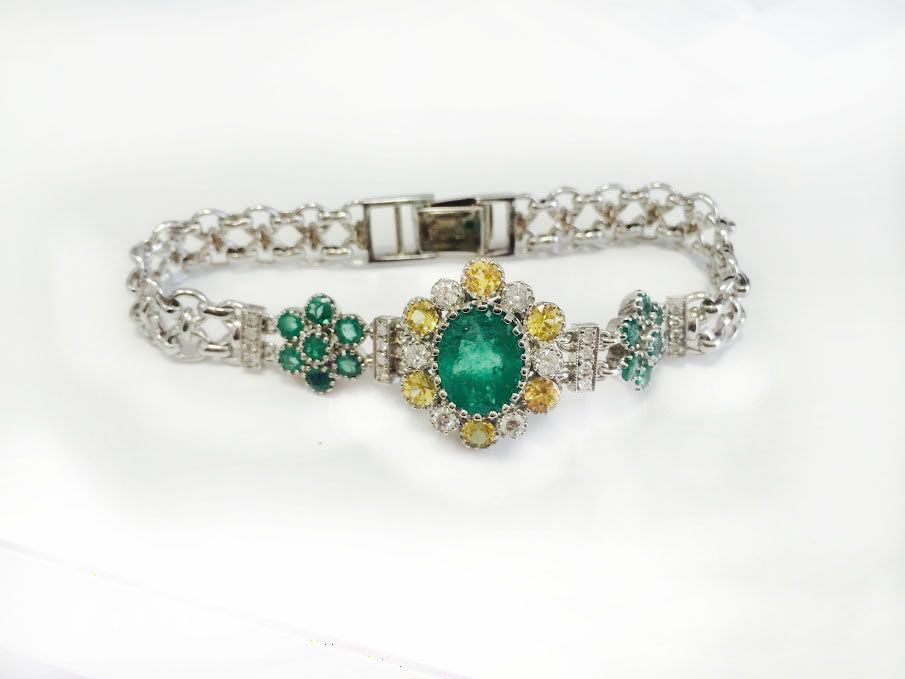 Y.SAPPHIRE 1.52CT / EMERALD 3.09CT CENTER / EMERALD 1.75CT, 14K W/G BRACELET 18.39GRAM / DIAMOND RD
