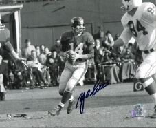 YA Tittle lead the Giants to three straight Eastern Division titles. Tittle threw seven touchdown passes on October 28, 1962, in a game against the Washington Redskins that the Giants won 49-34. In 1963, he set what was then an NFL record by throwing 36 touchdown passes. He was elected 7 times to the Pro Bowl and 3 times as an All-Pro selection. Y.A. Tittle has hand autographed this New York Giants 8X10 Passing Photo. This item was signed at in April 22, 2006 in Denver, CO. Certificate of Authenticity from Athlon Sports.