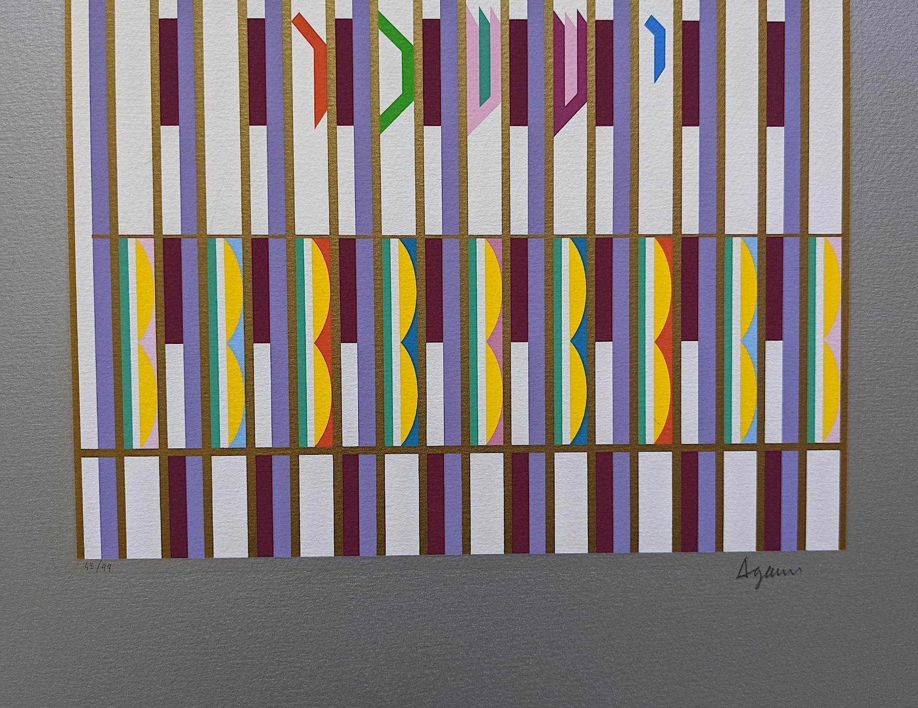 Yaacov Agam is an Israeli artist best known for his pioneering of Kinetic Art. Employing light and sound to provide a unique sensorial experience for the viewer, Agam melded formalism and mysticism. His lenticular prints, or Agamographs, made illusory images appear depending on the audience's viewpoint.