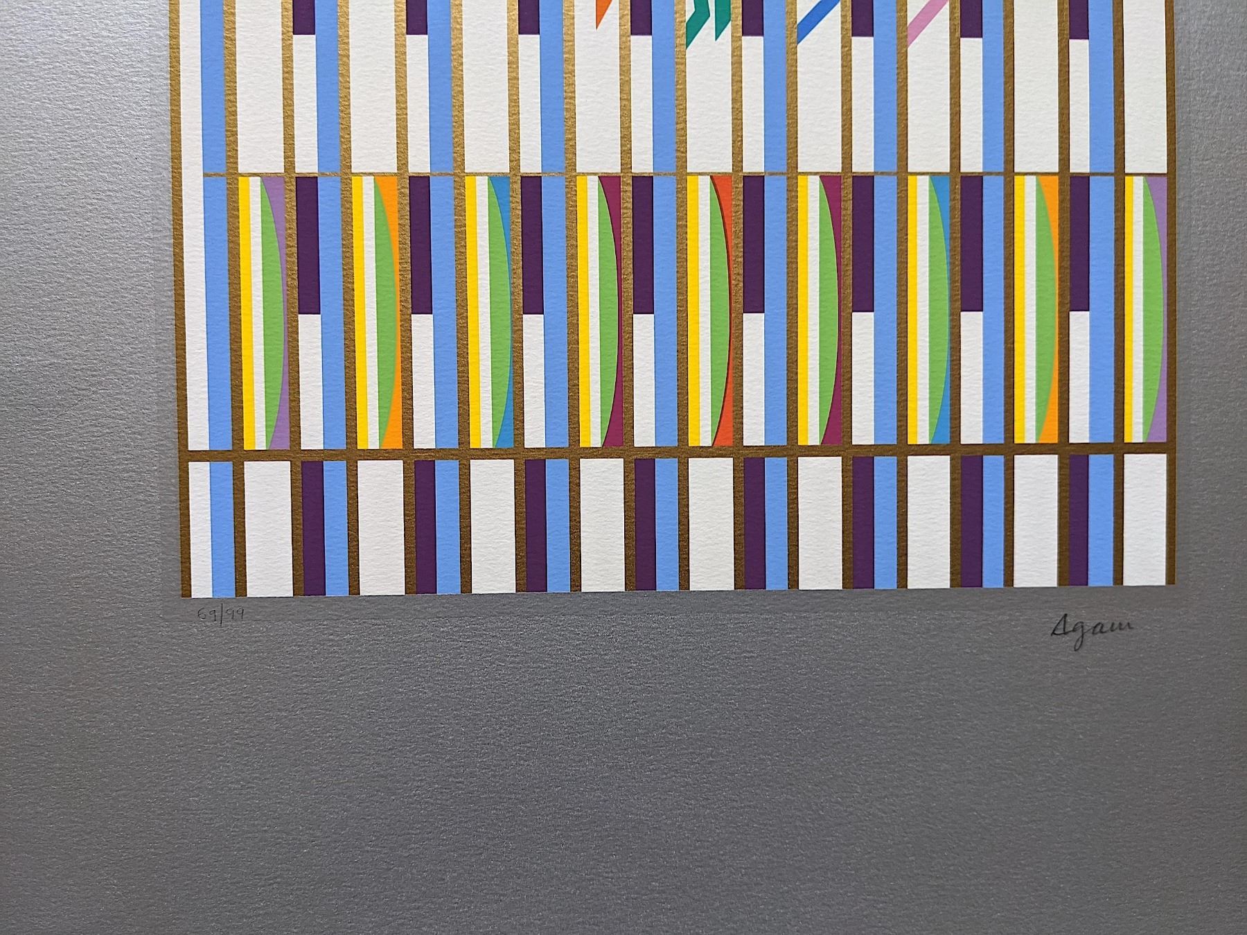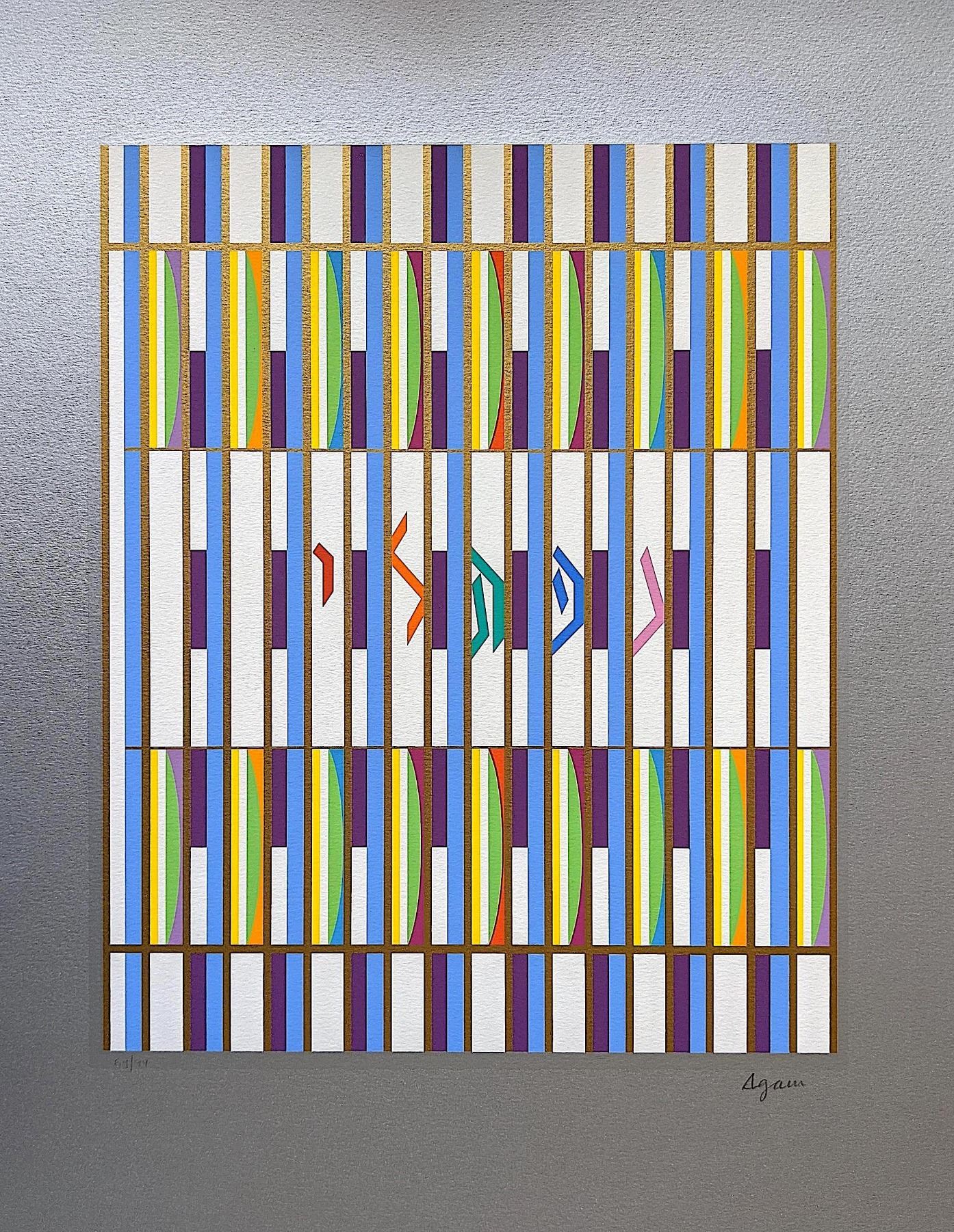 Yaacov Agam is an Israeli artist best known for his pioneering of Kinetic Art. Employing light and sound to provide a unique sensorial experience for the viewer, Agam melded formalism and mysticism. His lenticular prints, or Agamographs, made illusory images appear depending on the audience's viewpoint.