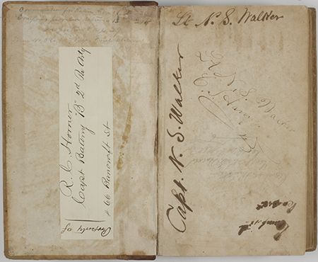 A fine Confederate imprint captured on the field by a Union opfficer, namely the Regulations for the Army of the Confederate States, (Richmond: J. W Randolph), 1862. 422pp. 8vo., rebound with original paper covers attached to heavier linen-covered boards, with partial leather boards and paper label affixed to spine. Within, on the front flyleaf, title page, and last page, the volume has been signed in ink and pencil by CSA Capt. N. S. Walker who served essentially the entire war with the 48th Mississippi Infantry. That regiment saw action at Fredericksburg, Chancellorsville, Gettysburg, and Spotsyvania Court House. A pencil note on the last page indicates that Walker was at "Orange Court House" on Jan. 1, 1864 and applied for leave to return home to Mississippi. Four months later, this book fell into his enemy's hands, most likely at Spotsylvania Court House where the regiment was subjected to bombardment by the 2nd Pa. Heavy Artillery. The front flyleaf bears a large slip affixed thereto reading "Property of R[ichard]. C[hew]. Horner Capt. Battery 'B' 2d Pa. Arty #66 Bancroft St.". Horner likely toured the battlefield after the action and recovered this "souvenir". A fine, evocative relic.