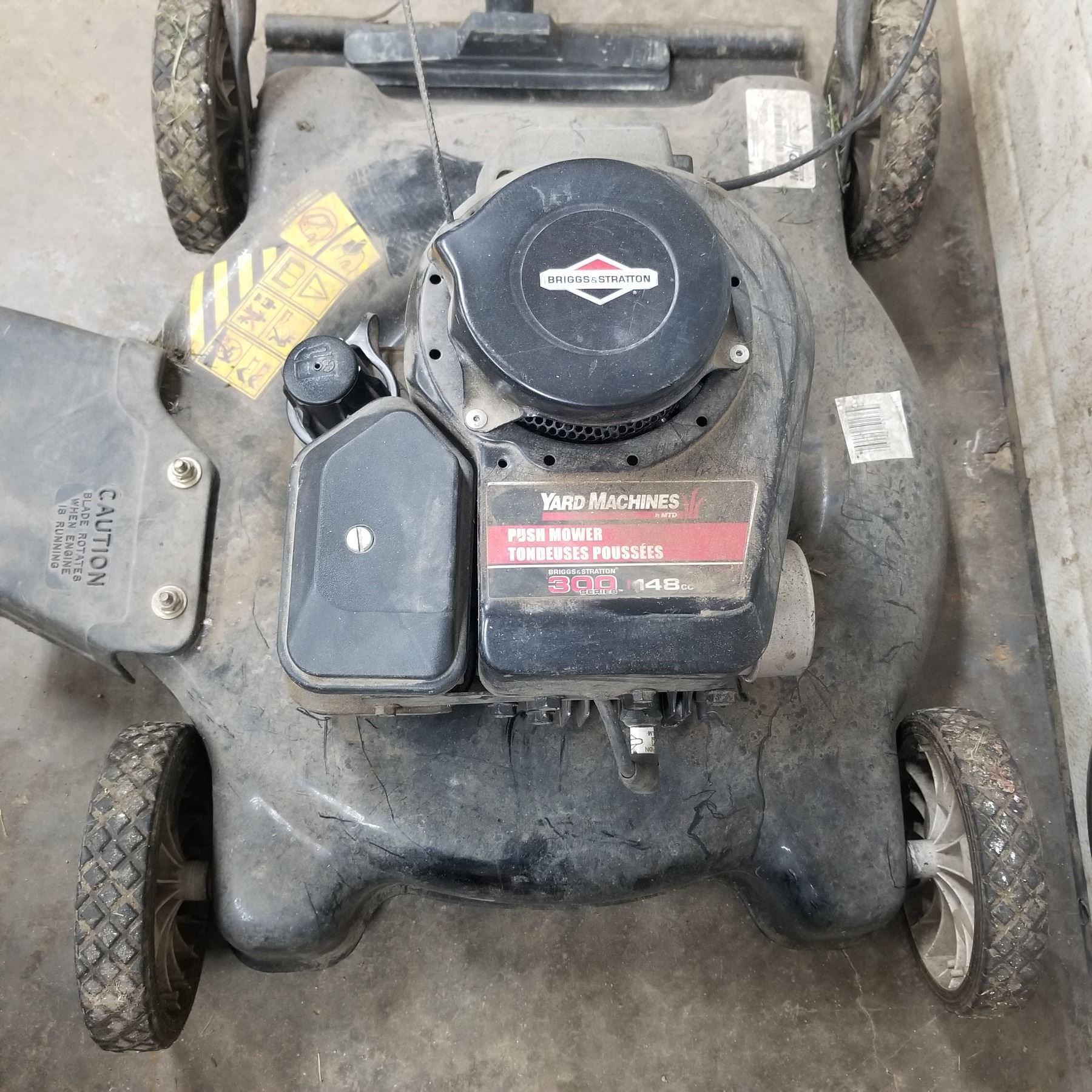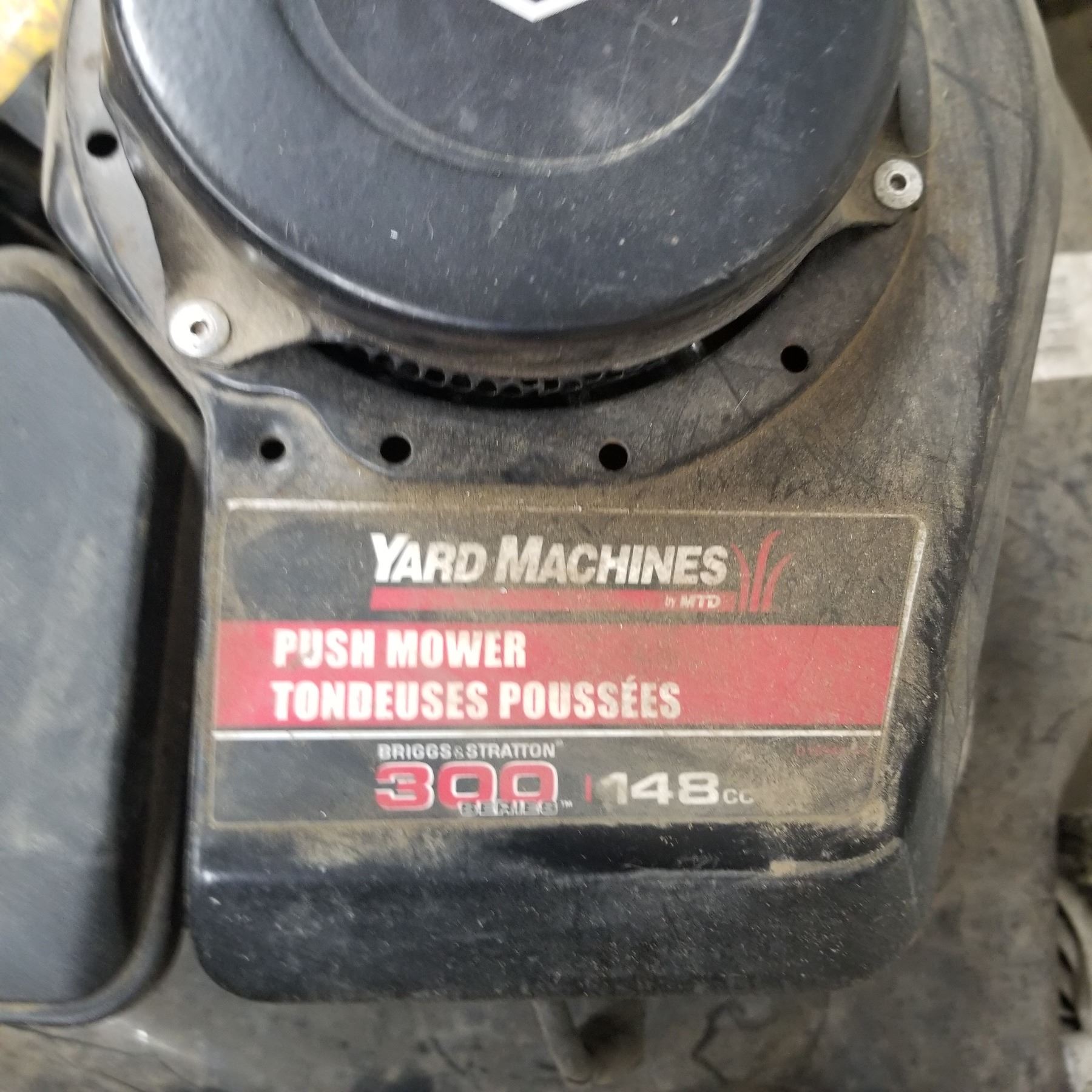 YARD MACHINE 148CC PUSH MOWER. BRIGGS AND STRATTON 300 SERIES