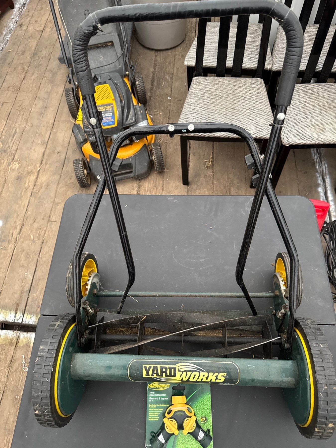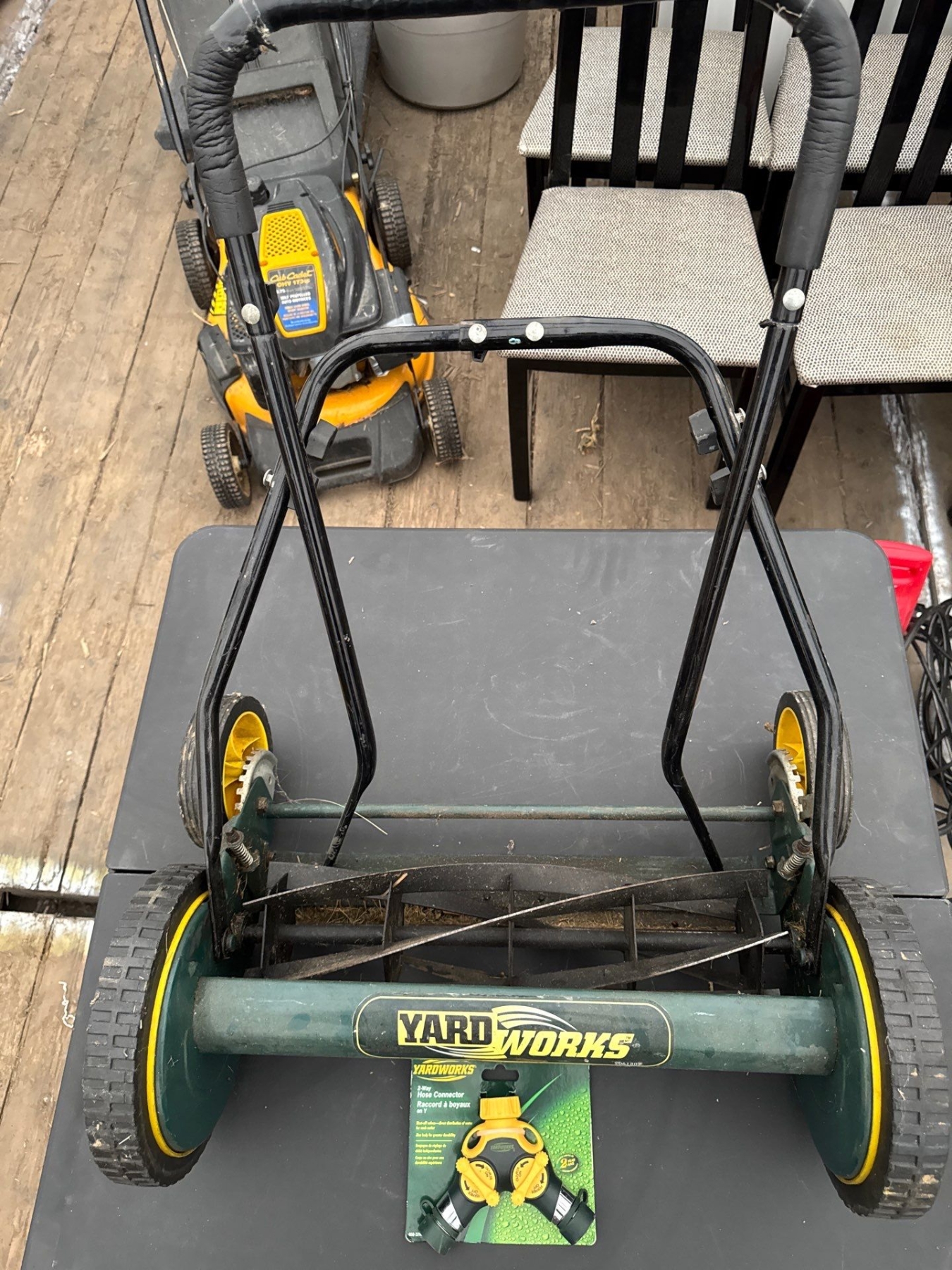 YARD WORKS HAND MOWER AND 2 WAY HOSE CONNECTOR