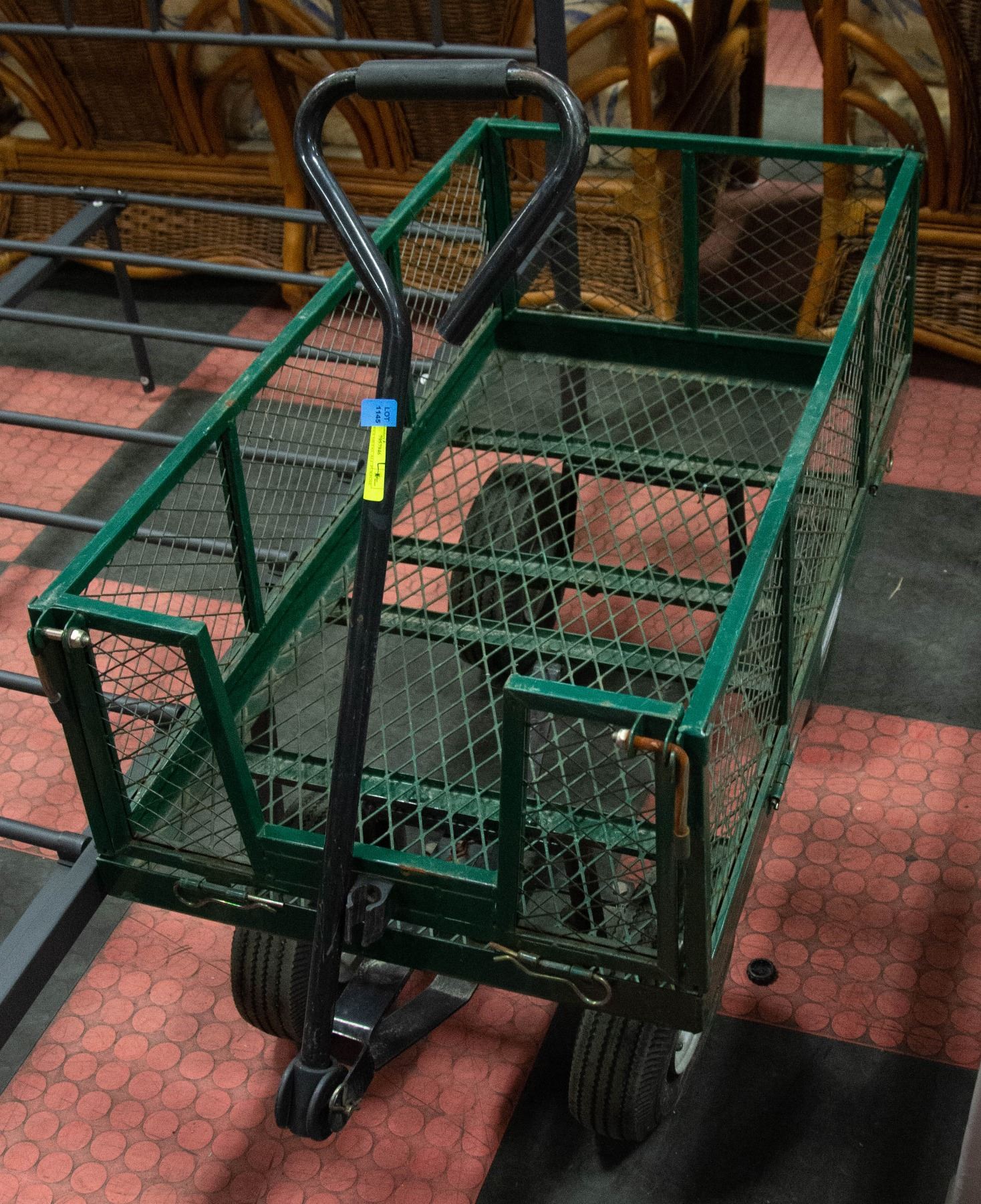 DARK GREEN, DROP-DOWN SIDES AND BACK, STURDY ALL METAL CONSTRUCTION (40"L X 20"W X 25"H) - TIRES NEED AIR-POSSIBLY TUBES **ALL ITEMS MUST BE REMOVED BY 5PM SATURDAY, APRIL 29TH 2023. ALL REMAINING ITEMS WILL BE SUBJECT TO A $6.00 PER DAY STORAGE CHARGE. ANY ITEMS REMAINING AFTER MONDAY, MAY 15TH, 2023 WILL BE CONSIDERED FORFEITED. NO REFUNDS WILL BE ISSUED FOR FORFEITED ITEMS. TO SCHEDULE A PICK UP APPOINTMENT CLICK HERE