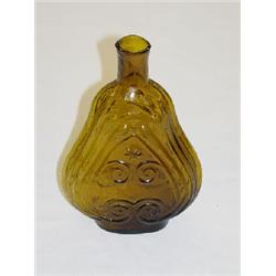 YELLOW AMBER SCROLL PINT FLASK - GIX-14 - PONTIL, BRUISED BUBBLE
