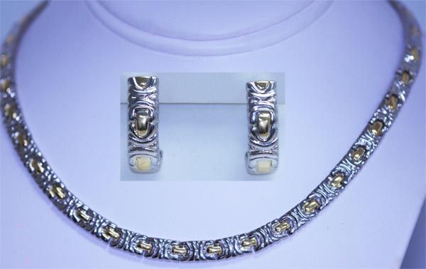 YELLOW AND WHITE BRASS OMEGA STYLE NECKLACE AND EARRING **|**|** YELLOW AND WHITE BRASS OMEGA STYLE NECKLACE AND EARRING SET ; MSRP: $900