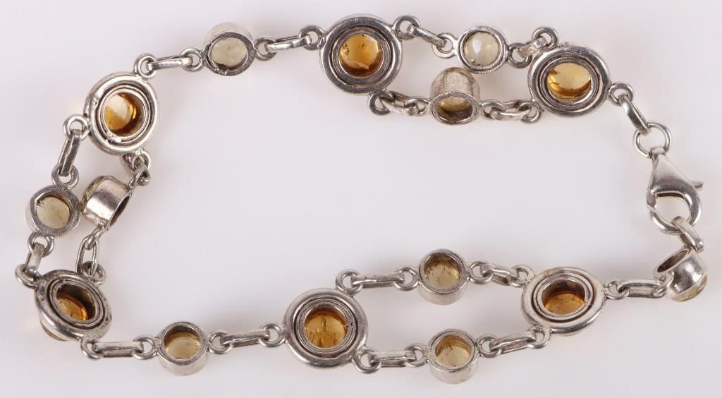 Yellow citrine sterling silver ladies bracelet with cabochon citrines.