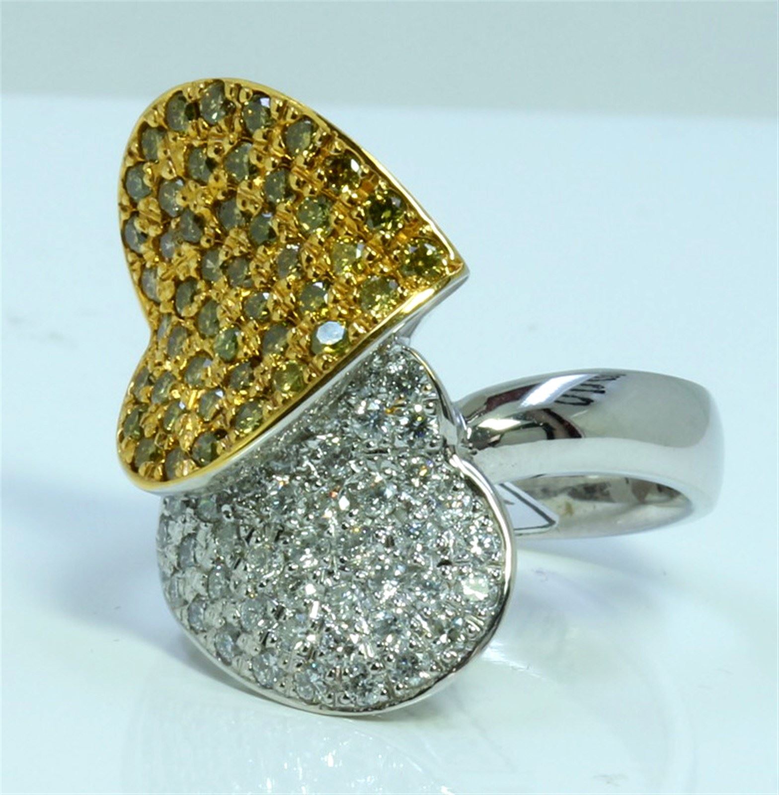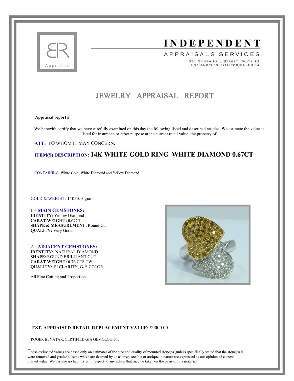 14K WHITE GOLD RING 10.3GRAM / WHITE DIAMOND 0.67CT GH COLOR Si CLARITY / YELLOW DIAMOND 0.76CT