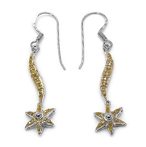 0.27 CARAT YELLOW DIAMOND .925 STERLING SILVER EARRINGS - METAL INFORMATION: .925 STERLING SILVER FINISH: HIGH SILVER POLISH ITEM: EARRINGS TOTAL CTW: 0.27CTW WEIGHT: 3.29GMS STONE INFORMATION: DIAMOND YELLOW QUANTITY: 10 SHAPE / SIZE: ROUND/1.20MM DIAMOND YELLOW QUANTITY: 32 SHAPE / SIZE: ROUND/1.00MM