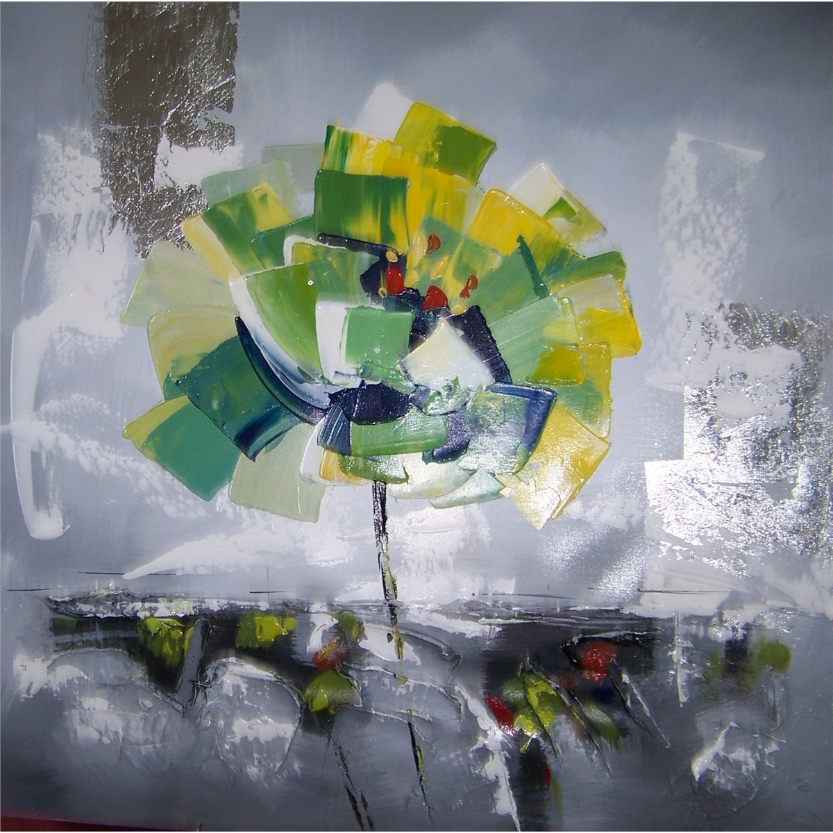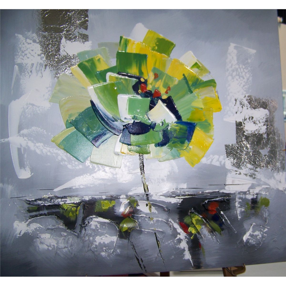 YELLOW FLOWER  ORIGINAL POP ART STYLE IMPASTO PAINTING IN MANNER OF PETER MAX