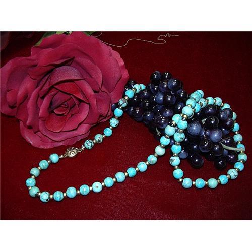 <tr><td>Title: YELLOW GOLD AND TURQUOISE BEAD NECKLACE </td></tr>