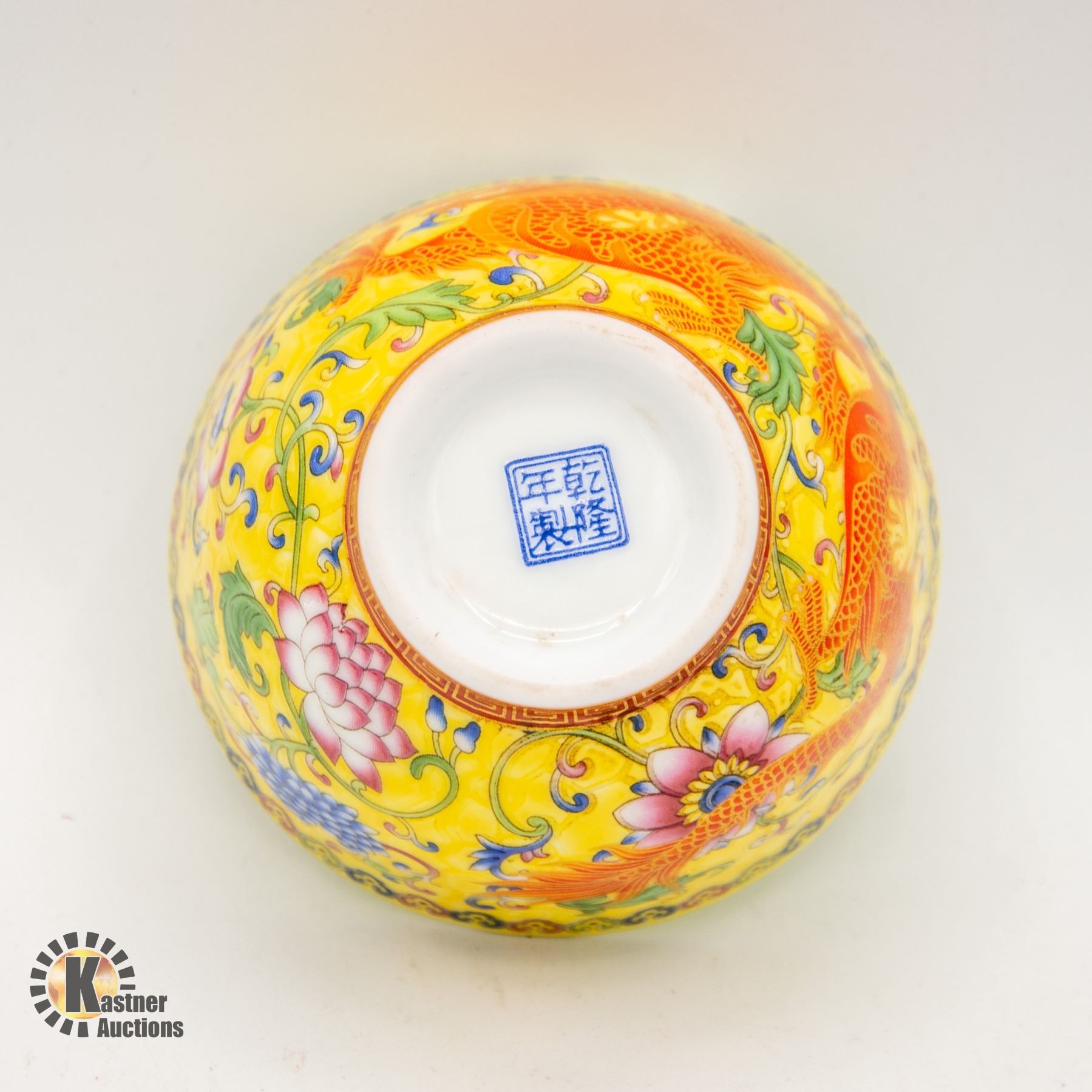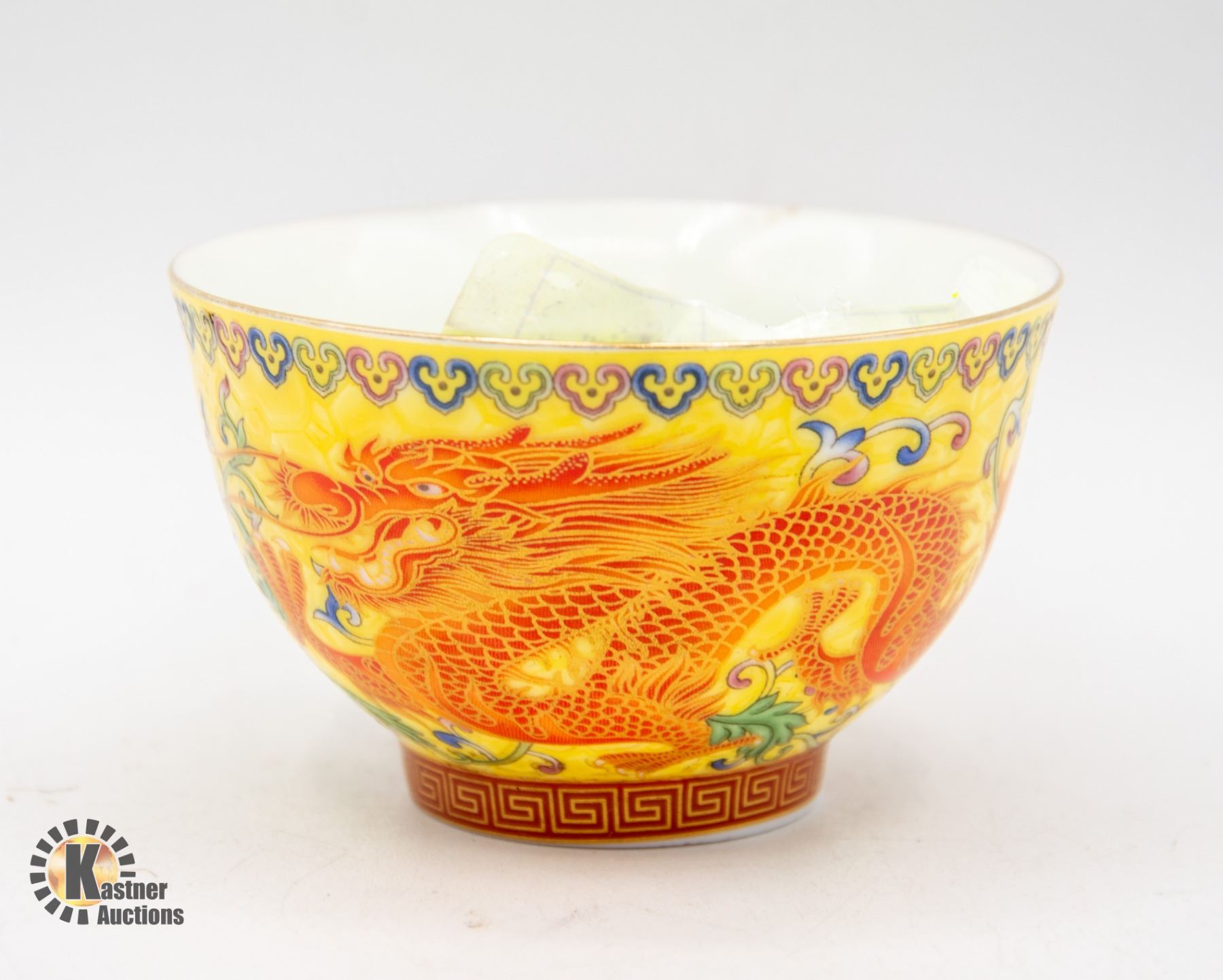 A YELLOW GROUND FAMILLE ROSE DRAGON CUP **ALL ITEMS MUST BE REMOVED BY 5PM SATURDAY, SEPTEMBER 30TH 2023. ALL REMAINING ITEMS WILL BE SUBJECT TO A $6.00 PER DAY STORAGE CHARGE. ANY ITEMS REMAINING AFTER MONDAY, OCTOBER 16TH, 2023 WILL BE CONSIDERED FORFEITED. NO REFUNDS WILL BE ISSUED FOR FORFEITED ITEMS. TO SCHEDULE A PICK UP APPOINTMENT CLICK HERE