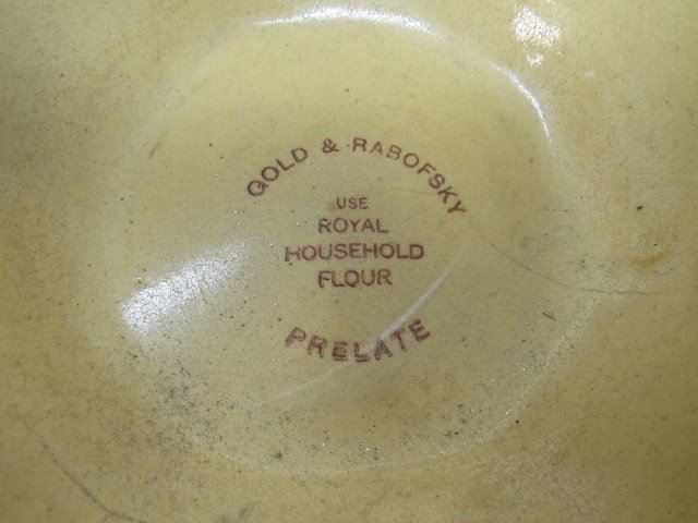YELLOW MIXING BOWL WITH ROYAL HOUSEHOLD FLOUR ADVERTISING- PRELATE SASK (MADE MY MEDALTA)