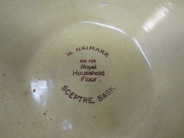 YELLOW MIXING BOWL WITH ROYAL HOUSEHOLD FLOUR ADVERTISING- SCEPTRE SASK (MADE MY MEDALTA)