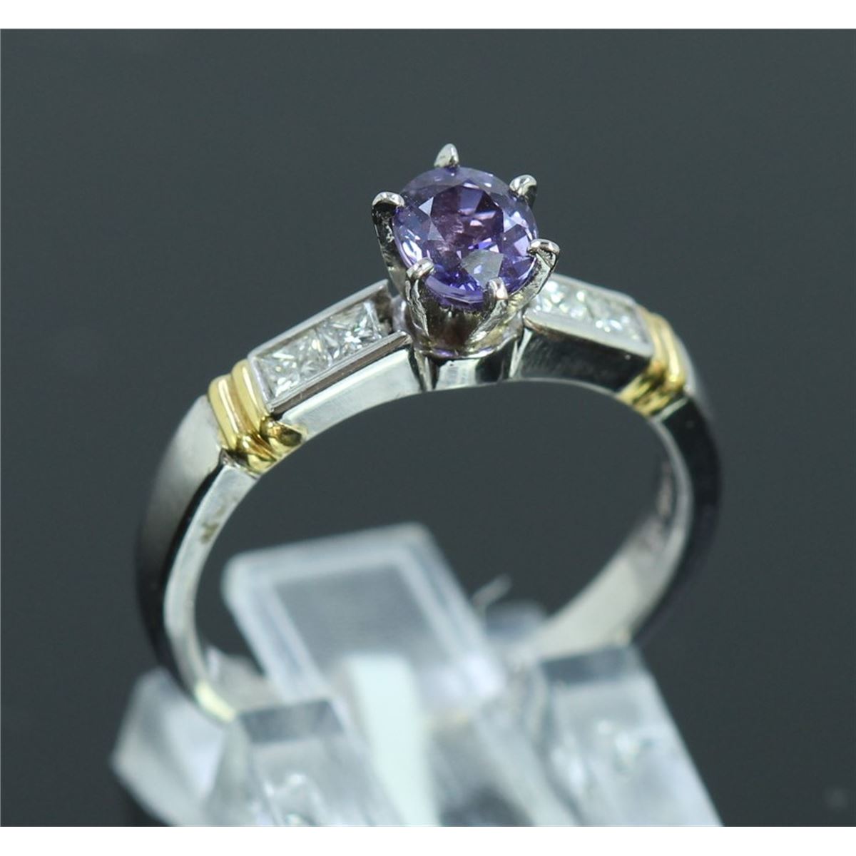 YELLOW PLATINUM PURPLE SAPPHIRE DIAMOND RING/5.7 GRAMS/PURPLE SAPPHIRE 0.80CT/DIAMOND 0.20CT